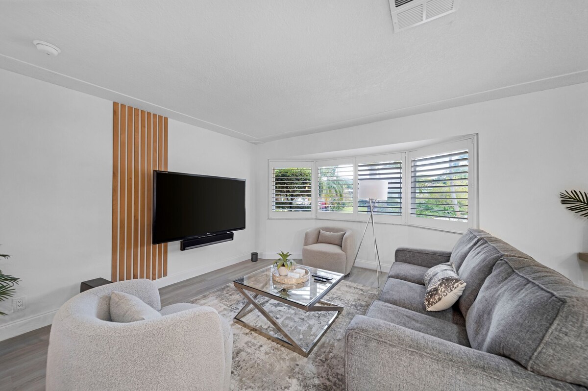 ⓘ ABOUT THIS SPACE: Experience the charm of this stylishly renovated 3-bed, 2-bath home in Fort Lauderdale’s Flamingo Park. Set on a quiet cul-de-sac, it offers a seamless open layout, elegant furnishings, and a chef-ready kitchen. Relax by the sparkling pool or enjoy canal views from the dock. Inside, have fun with a game of pool or ping-pong in your private retreat. ⚠︎Friendly reminder: No parties allowed. Noise detectors help maintain a peaceful neighborhood. 𖠿 THE SPACE: AREA: Located in the peaceful Flamingo Park neighborhood of Fort Lauderdale, this home offers a perfect blend of quiet residential comfort and convenient access to local attractions. ✦ Just minutes from Snyder Park - a beautiful green space with lakes, picnic areas, dog park, and walking trails. ✦ Close to Fort Lauderdale - Hollywood International Airport and Port Everglades, making travel effortless. ✦ A short drive to downtown Fort Lauderdale, Riverwalk, and the vibrant dining scene along Davie Blvd and Andrews Ave. ✦ Easy access to boating and kayaking routes through nearby canal systems and the New River. ⍟ Enjoy the calm of a tucked-away neighborhood while staying connected to everything Fort Lauderdale has to offer. ⸻ SPACE: This home is not just stylish – it’s designed for comfort, connection, and fun. Perfect for families, groups, or extended stays, the thoughtful layout ensures everyone feels at ease, whether relaxing indoors or enjoying the sunshine outside. Inside the Home, You’ll Find: ✦ 3 cozy bedrooms and 2 full bathrooms with modern finishes ✦ Open-concept living, dining, and kitchen area filled with natural light ✦ Entertainment zone with pool table and ping-pong for endless fun ✦ Fully equipped kitchen with quality appliances and breakfast bar ✦ Spacious backyard with private pool and sun loungers ✦ Dock with ocean access – ideal for boating or simply enjoying the water views ✦ Central A/C and fast Wi-Fi to keep you cool and connected ✦ Laundry room with washer and dryer for convenience ⍟ This isn’t just a stay – it’s your Fort Lauderdale home, where comfort meets coastal charm and every detail invites you to unwind and make memories. 𓇼 GUEST ACCESS: BEDROOMS & BATHROOMS: ✦ Bedroom 1: King-size bed, flat-screen TV, and direct backyard access. Features an en-suite bathroom with a walk-in shower, soft towels, and complimentary toiletries. ✦ Bedroom 2: Queen-size bed, flat-screen TV, and closet for convenient storage. A relaxing space for peaceful rest. ✦ Bedroom 3: Two double beds, flat-screen TV, and bright décor. Perfect for kids or additional guests. ✦ Bathroom 1: En-suite to the primary bedroom with a modern walk-in shower and sleek finishes. ✦ Bathroom 2: Shared hallway bathroom with a shower-tub combo, stocked with fresh towels and essentials. ⍟ Each bedroom and bathroom offers comfort, privacy, and modern touches, creating a calm retreat after a day by the pool or exploring Fort Lauderdale. ⸻ LIVING AREA: The open living area combines comfort and style, creating a bright and welcoming atmosphere perfect for relaxing or gathering with loved ones. Large windows fill the space with natural light, highlighting its clean, modern design. ✦ Spacious lounge with a plush gray couch, two cozy armchairs, and a glass coffee table ✦ Large flat-screen TV for entertainment and cozy evenings ✦ Elegant décor with soft tones and contemporary accents ✦ Smooth flow between the living space, kitchen, and game area for easy connection ✦ Modern lighting and large windows that enhance the airy feel ⍟ This inviting open-concept space is designed for comfort, conversation, and relaxation after a sunny Fort Lauderdale day. ⸻ KITCHEN & DINING: The kitchen and dining areas are designed to bring everyone together, combining modern style with functionality for effortless meals and gatherings. ✦ Fully equipped kitchen with stainless steel appliances including refrigerator, stove, oven, microwave, dishwasher, coffee maker, toaster, and kettle ✦ Sleek cabinetry, bright countertops, and plenty of space for preparing and serving meals ✦ Breakfast bar with five cushioned stools for casual dining or morning coffee ✦ Dining area with a large glass-top table and plush seating for eight guests ✦ Elegant lighting and modern décor create a warm, inviting atmosphere ⍟ Whether enjoying a family breakfast or an evening dinner with friends, this stylish setup makes every meal a relaxed and memorable experience. ⸻ OUTDOOR SPACE: Step outside to your private tropical retreat, where comfort meets coastal charm. The spacious screened patio and canal-front setting create a peaceful atmosphere for relaxation and connection. ✦ Covered patio with ceiling fans, perfect for lounging or dining in the shade ✦ Large outdoor dining table with comfortable seating for eight ✦ Private heated pool surrounded by a screened enclosure for comfort and privacy ✦ Built-in BBQ grill and pass-through kitchen window for easy serving ✦ Paved sun deck with lounge chairs ideal for soaking up the Florida sunshine ✦ Private dock with ocean access, great for boating or enjoying the water views ⍟ Whether you’re swimming, grilling, or simply relaxing by the canal, this outdoor space offers everything you need for an unforgettable Fort Lauderdale stay. ⸻ GAMES & ENTERTAINMENT AREA: The home’s entertainment area is perfect for both relaxation and friendly competition, offering a bright and open layout designed for fun. ✦ Versatile game table that easily converts between ping pong and pool for endless enjoyment ✦ Stylish bar area with counter seating and hanging glass rack, ideal for evening drinks ✦ Ceiling fan and ample lighting to keep the space cool and inviting ✦ Open design connecting to the kitchen and patio for seamless socializing ⍟ Whether you’re hosting a game night, practicing your pool skills, or simply relaxing with a drink, this sp