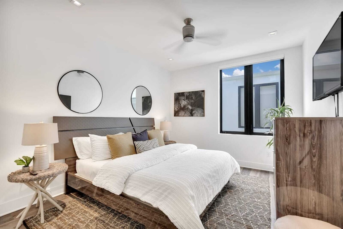 Steps from downtown excitement and the beach, our Floridian-modern retreat features lush gardens, a private Hot Tub, and stylish indoor-outdoor living. Perfect for cocktails under palm trees or unwinding in serene comfort. Our prices include all fees. No hidden fees.
