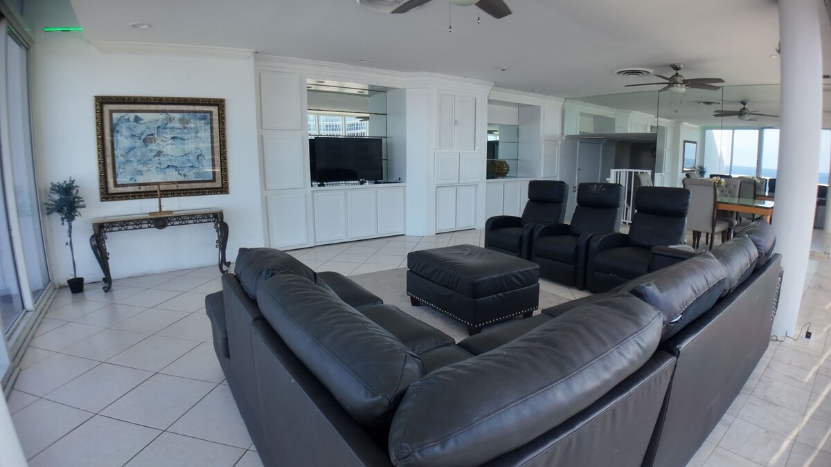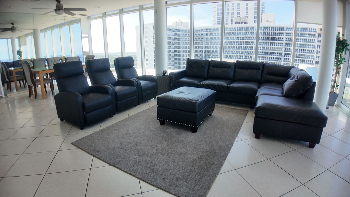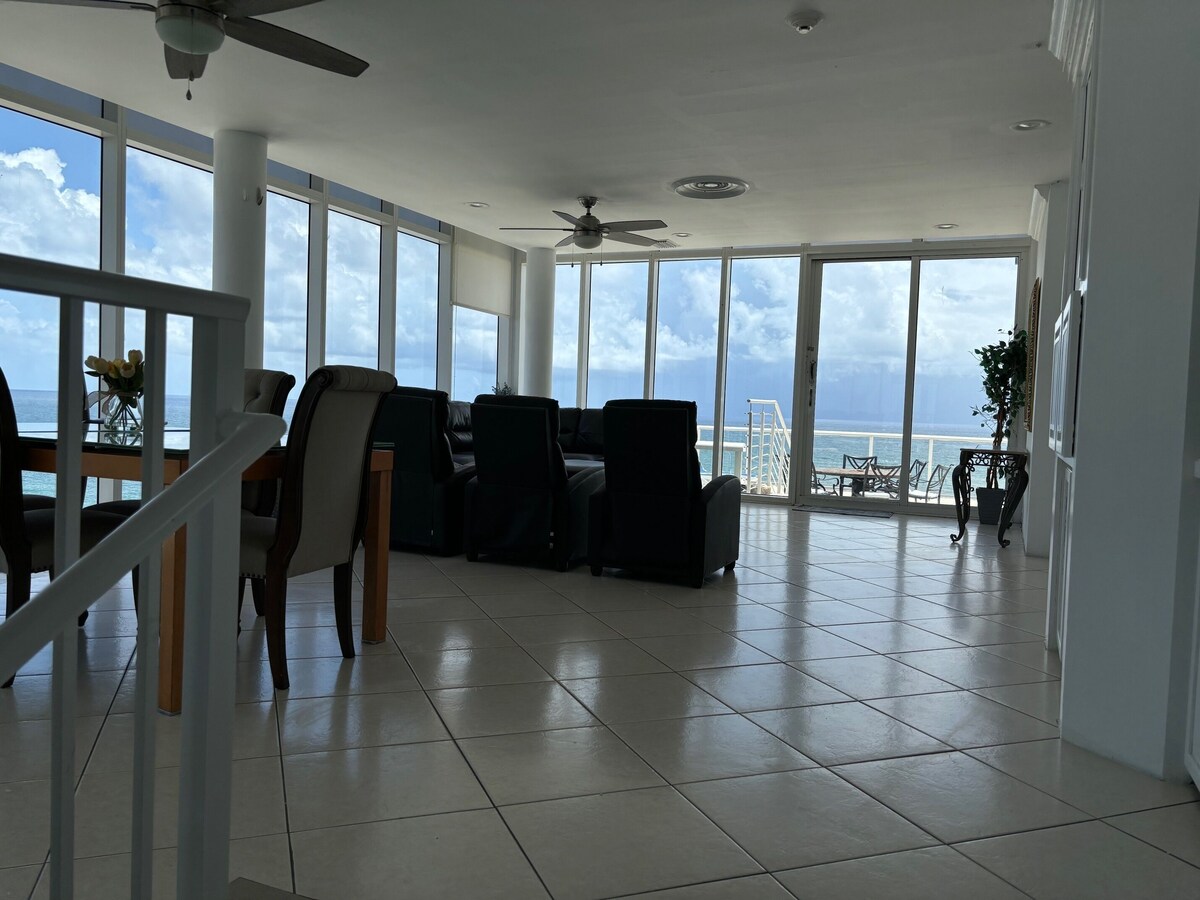 If you are looking for scenic views, ample space, and a location that is both relaxing and in the heart of Lauderdale-by-the-Sea nightlife, look no further than this stunning two-bedroom penthouse at the Ocean Manor Hotel & Resort. The penthouse is the size of two penthouses combined, allowing privacy for those staying in the master suite while the open floor plan allows the occupants to explore to their heart's content. The Main Bedroom contains two queen beds and a gorgeous view of the city and ocean with floor-to-ceiling windows. The guest bathroom connects to both the bedroom and hallway, with a large white bathtub seated in front a perfect view of the ocean, and an ample tile shower situated in front of his and hers sinks. The Master Suite has a large king-size bed, couch, and floor-to-ceiling windows. The bed floats off the main level of the penthouse, leaving a walkway for the Master Bathroom and a spacious walk-in closet. It is the perfect room for a romantic getaway or bachelorettes. The Kitchen includes a microwave, stove, refrigerator, and a washer and dryer. We welcome you to cook a meal together, enjoy the dining area at the heart of the living room and entertainment area, or enjoy a coffee outside on the balcony while the sun rises over the ocean. Rain or shine, the views of the City of Fort Lauderdale are breathtaking. With amenities like WiFi, and Smart TV, guests will have everything they need for a comfortable stay. If you are ever in need of anything while enjoying your stay, whether that be extra towels or recommendations on what to do while staying in Fort Lauderdale, please do not hesitate to contact the owner, Samantha, who is always ready to help you have the most relaxing vacation possible. We look forward to hosting you. Our prices include all fees. No hidden fees.