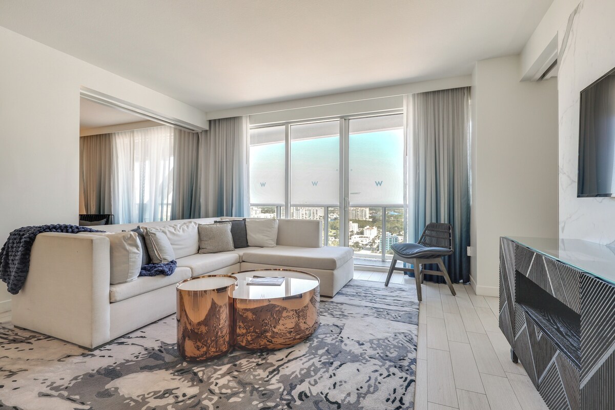 W Residences Fort Lauderdale | Community Amenities w/ Fee | Walk to Sandy Beaches | 5 Mi to Port Everglades Cruise Terminal Welcome to this lavish 2-bedroom, 2-bath vacation rental nestled in the distinguished locale of Fort Lauderdale. Spend the afternoon soaking up the sun on the balcony before taking a dip in the shared pool. After unwinding on the shoreline, enjoy a seafood dinner at a nearby restaurant or experience the local nightlife. Leave this condo feeling refreshed and at ease! -- THE PROPERTY -- 24090006 SLEEPING ARRANGEMENTS - Bedroom 1: 1 queen bed - Bedroom 2: 1 queen bed - Living Room: 1 queen sleeper sofa COMMUNITY AMENITIES (w/ mandatory fee of $65.20/room/day paid to the hotel): - Community outdoor pool (heated) - East pool available w/ addt'l fee ($125/day; paid to the hotel) - Daily fitness camp - 2-hour bicycle rental - 2 beach chairs, 1 umbrella MAIN FEATURES - Private balcony w/ ocean views - Wide open sliding glass door - Smart TVs w/ cable - En-suite jetted tub - Dining table - Walk-in closet KITCHEN - Stove/oven, refrigerator, dishwasher - Microwave, toaster oven, toaster - Drip coffee maker, blender - Ice maker, water filter - Cooking/baking basics - Dishware/flatware - Trash bags & paper towels GENERAL - Free WiFi (high speed) - Central A/C & heating, ceiling fans - Linens/towels, complimentary toiletries, hair dryer - Washer & dryer, iron & board FAQ - Quiet hours (10:00 PM-7:00 AM) - Internal noise monitor - Pet fee (paid pre-trip) ACCESSIBILITY - Single-story condo - 20th-floor unit, step-free entry via elevator PARKING - Community parking lot: metered parking only (first-come, first-served, fee paid on-site) - Valet service available (addt'l fee paid on-site; $60/night + tax) ADDT’L ACCOMMODATIONS - Two additional properties are available in the same condo complex, each with separate nightly rates. If you would like to reserve multiple rentals, please inquire for more information prior to booking -- THE LOCATION -- - Prime Fort Lauderdale location: walk to beaches, shops, restaurants & nightlife - Across the street from Central Beach - 0.5-1 mile to Fort Lauderdale Beach, Sebastian Street Beach, & Hugh Taylor Birch State Park - 1 mile to The Galleria at Fort Lauderdale, Water Taxi Stop #6, Las Olas Beach & Bonnet House Museum & Gardens - 3 miles to Riverwalk - 6 miles to Cruise Terminals - 21 miles to Hard Rock Stadium - 6 miles to Fort Lauderdale-Hollywood Int'l Airport -- REST EASY WITH US -- Evolve makes it easy to find and book properties you’ll never want to leave. You can relax knowing that our properties will always be ready for you and that we’ll answer the phone 24/7. Even better, if anything is off about your stay, we’ll make it right. You can count on our homes and our people to make you feel welcome — because we know what vacation means to you. -- POLICIES -- - No smoking - Pet friendly with $100 fee (+ fees & taxes, 1 pet max) - No events, parties, or large gatherings - Must be at least 21 years old to book - Additional fees and taxes may apply - Photo ID may be required upon check-in - Please observe quiet hours from 10:00 PM to 7:00 AM ADDITIONAL INFORMATION - This single-story condo is located on the 20th floor and offers step-free entry via elevator - This property features noise sensors inside the condo. These devices do not record sound (or video), only noise levels - There is a mandatory resort fee of $65.20 per room per day, which is paid on-site upon arrival. The fee grants access to the community amenities and includes 2 beach chairs, 1 umbrella, a daily fitness camp, and a 2-hour bicycle rental - Use of the resort's Owner's Pool is included in the mandatory resort fee. Access to the east side pool is available with an additional fee of $125 per day, paid on-site - Optional valet parking is available on-site for $60/night + taxes or guests can look for a metered spot in the lot. There is no free parking available Our prices include all fees. No hidden fees.