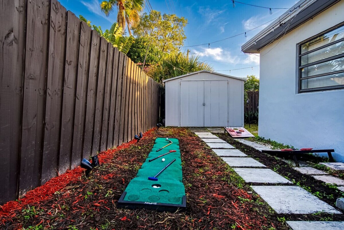 Welcome to Las Olas Getaway! Your private Fort Lauderdale retreat with heated pool, hammock, BBQ patio, mini golf, game room, screen projector, cornhole, pool table & arcades. Unwind with board games, books, and family-ready amenities. Free parking for 3 cars. Perfect for families or friends seeking fun, comfort, and South Florida sunshine year-round!