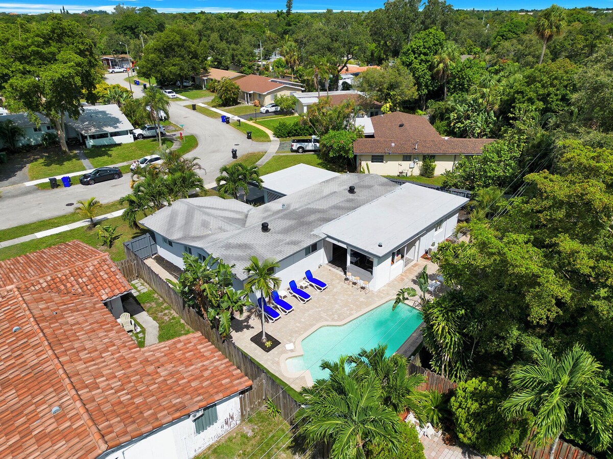 Welcome to Outdoor Paradise in Riverland, this newly renovated home will be your perfect home away from home. You will fall in love with the modern furniture and touches. Beautiful private heated pool. Relax in our comfortable beds, with mattresses and bedding, televisions in every room and high-speed Internet. The fully equipped kitchen will be perfect for any meal, and enjoy the outdoor kitchen and Fire Pit Area relaxation area. 5 millas - Aeropuerto FLL, a 8 millas de \ ; Our prices include all fees. No hidden fees.