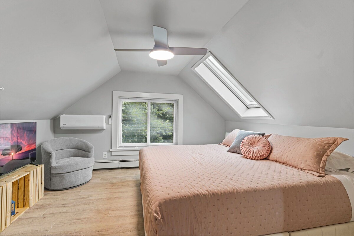 Welcome to Serenity Suite! Whether you are in town on business or for fun, make some memories in this stylish 3rd floor unit located MINUTES from Downtown Minneapolis. This space is perfect for singles, couples, or small families coming to visit loved ones or friends gathering for an event. Enjoy the entire 3rd floor to yourself and your guests. Come stay awhile in this calm and comfortable home today. We would be honored to have you! Book now. When you first enter your 3rd floor home, you'll walk up stairs to lead you up to your comfortable stay. With the unit being on the 3rd floor, you will need to climb 2 flights of stairs to get to the home. Next, you'll enter an open kitchen and dining area which includes all of your cooking essentials, plenty of plates and glasses for dining and a fully stocked coffee bar. You'll then enter your cozy living room area complete with a fold out couch that can be used as an additional full size bed. Enjoy a large Roku TV with all your favorite apps to catch up on your favorite shows. Then enter your bedroom through stylish french doors and enjoy your luxurious king size bed. Enjoy the unique ceiling window above the bed and a large Roku TV and USB charging ports for your convenience. In addition to all of these luxuries, this home also includes: * High Speed Wi-Fi with speeds of 900mbps * Roku TV's in living room and bedroom featuring free HBO Max, Starz, Paramount+, Amazon Prime, Hulu and Disney+ * Designated alley parking spot and street parking * Full coffee nook with wide variety of coffee, tea, creamer, and sugars (we know how important morning coffee is!) * Fully stocked kitchen for dining and cooking * Games and books to enjoy * Fully stocked bathroom with shampoo, conditioner, bar soap, hair dryer, Q-tips and first aid kit. The toilet is closer to the sink than normal because of plumbing position so be advised. * All bedding, pillows, towels, and hangers for your every need * Fully fenced in backyard for your furry friends along with privacy fencing. Pet fee is $45 per pet. The light rail is just blocks away with easy access to downtown Minneapolis for Vikings or Twins games, the Minneapolis airport or Mall of America. You and your guests have access to the entire 3rd level along with your own private entrance. Also enjoy your morning coffee on your private patio with seating. Owner occupied property with owners on the first floor. We are here for anything you may need along with acknowledging your need for privacy. Don't miss out and come stay at this home! If you discover something that you need, please let us know so we can assist you! Book now and come experience serenity and enjoy your stay. Our prices include all fees. No hidden fees.