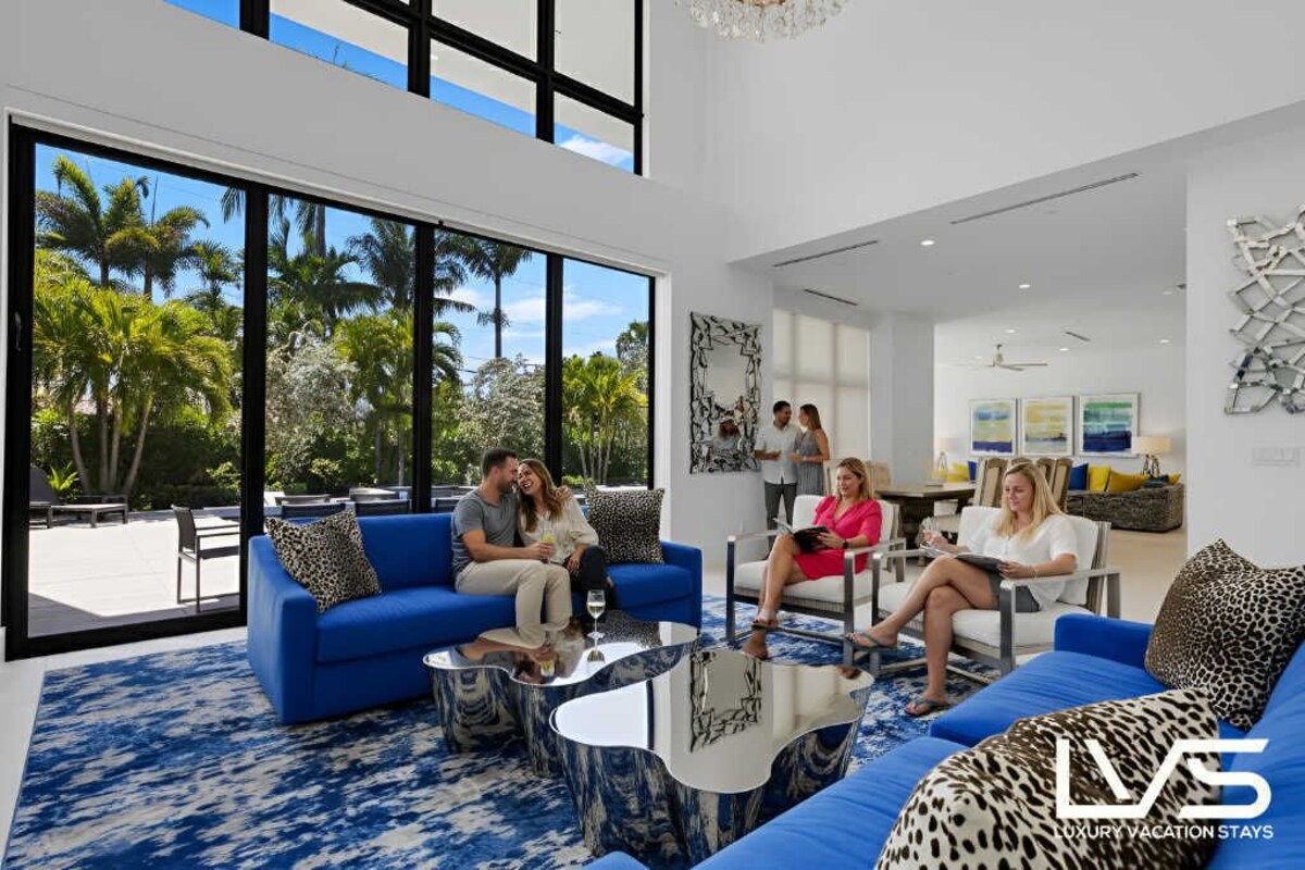 Summary: Villa Blanco, a refined new construction five-bedroom escape, rests walking distance to Fort Lauderdale Beach and the iconic inlet where yachts and cruise ships set sail. Walk to Pier 66, the Convention Center, and Las Olas. This sanctuary blends indoor–outdoor living with rooftop views, private office, elevator, chef’s kitchen, heated pool, spa, and luxurious suites. Gather with friends, dine alfresco, and watch the nautical parade from your private rooftop haven. The Space: Luxury Vacation Stays Where every stay sets the Standard™ Luxury Vacation Stays, LLC is a full-service Luxury Vacation Rental Management Company located in Fort Lauderdale, FL with over 600 Five Star reviews and many villas and condo’s throughout South Florida, The Caribbean & Europe. Luxury Vacation Stays, LLC advertises on many online platforms including our own site LuxuryVacationStays. Luxury Vacation Stays, LLC offers white glove concierge style rental and management. 🛌 FULLY APPOINTED BEDROOMS ● Primary Suite (2nd Floor): King bed, smart TV, private balcony overlooking the backyard, walk-in closet, and a spacious his-and-hers en-suite bathroom with soaking tub and rain shower. ● 2nd Suite (2nd Floor): Queen bed, smart TV, walk-in closet, and en-suite bathroom. ● 3rd Suite (2nd Floor): Queen bed, smart TV, walk-in closet, and en-suite bathroom. ● 4th Suite (2nd Floor): Queen bed, smart TV, closet, and a Jack & Jill bathroom shared with the 5th Suite. ● 5th Suite (2nd Floor): Queen bed, smart TV, closet, and a Jack & Jill bathroom shared with the 4th Suite.. ● Half Bathroom (1st Floor): Conveniently located near the living and entertaining areas. ☀️ Rooftop Terrace (3rd Floor) • Open-air rooftop with sectional lounge seating & umbrellas • Kitchenette with wine fridge, sink, and coffee maker • Elevated sunset views, perfect for evening cocktails 🛋️ Ground Floor Living ● Living Room • 2 modern Lawson-style sofas • Seamless indoor-outdoor flow to pool & patio ● Family Room • Two Lawson-style sofas with mid-century charm • Three barrel swivel chairs, Smart TV • Garden and pool views ● Dining Room • Light oak dining table with seating for 10 • Glass doors offering serene outdoor backdrop ● Chef's Kitchen • Oversized island with bar seating for 4 • Range with oven & hood • Microwave, toaster, coffee maker, blender • Dishwasher, Full-size refrigerator • Fully stocked with cookware, dinnerware & essentials ● Office / Fitness Den • Dedicated workspace with office chair • Wingback armchair for reading • Bicycle machine for daily workouts ● Laundry Room • Full-size washer & dryer 🌴 Outdoor Living ● Heated pool & spa with tranquil loungers ● Outdoor Smart TV for poolside entertainment ● BBQ grill and covered dining for 10 🚗 Parking ● 2-car garage + driveway for 2 additional vehicles (vehicle size dependent) ● 🐕 PETS Pets are accepted on a case-by-case basis only. Approval requires that pets are potty trained, non-shedding, and that guests agree to all house rules regarding pets. DISCLAIMER: You must be 25 years or older to book this property. This property DOES NOT allow groups under 25 years of age, events, parties, photo shoots/production shoots or large gatherings of any kind. This property is located in a quiet residential area and the noise ordinance from 10 PM to 7 AM must be followed. Reservation will be canceled and guests will be asked to find other accommodations if there are noise complaints by the neighbors and/or the Fort Lauderdale Police Department gets dispatch to the property. Valid ID is required upon arrival and reservation will be canceled if the rules are not followed. Luxury Vacation Stays is the exclusive operator of this property. PARKING: Parking is ONLY permitted inside driveway. The driveway can accommodate Parking for 2 vehicles max. There is NO STREET PARKING, NO parking over sidewalk & NO PARKING ON TURF/LANDSCAPING. —Trailers, RVs, and commercial vehicles are STRICTLY PROHIBITED under any circumstances. This property is located in a quiet residential area and the residential noise ordinance from 10 PM to 7 AM must be followed. Reservation will be canceled and guests will be asked to find other accommodations if there are noise complaints by the neighbors and/or the Fort Lauderdale Police Department gets dispatch to the property. Below are compliance statements that the City of Fort Lauderdale requires for all Vacation Rental Properties: 1. It is unlawful to allow for a sexual offender or sexual predator to occupy this residence. 2. Noise - any sound shall not be plainly audible for a period of one (1) minute or longer at a distance of twenty-five (25) feet or more when measured from the source property line between the hours of 10:00 p.m. and 7:00 a.m. daily and at a distance of fifty (50) feet or more when measured from the source property line between the hours of 7:00 a.m. and 10:00 p.m. daily. 3. Vehicle Parking - all vehicles associated with the Vacation Rental must be parked in compliance with Chapter 26 of the Code of Ordinances of the City of Fort Lauderdale: all vehicles associated with the vacation rental must be parked within a driveway located on the subject property; vehicles are not permitted to park in the swale or on the street. 4. Trash Pick-Up - No solid waste container shall be located at the curb for pickup before 6:00 p.m. of the day prior to pick up, and solid waste container must be removed before midnight of the day of pickup. The Property must be free of garbage and litter except the storage of garbage, and litter in authorized receptacles. Approved as a City of Fort Lauderdale Vacation Rental, Certificate #21030045. The complete written text of the Vacation Rental Code of Ordinances of the City of Fort Lauderdale, Florida is available online by searching City of Fort Lauderdale Ordinance No. C-16-25. Guest Access: ● Each guest will receive a unique keypad 