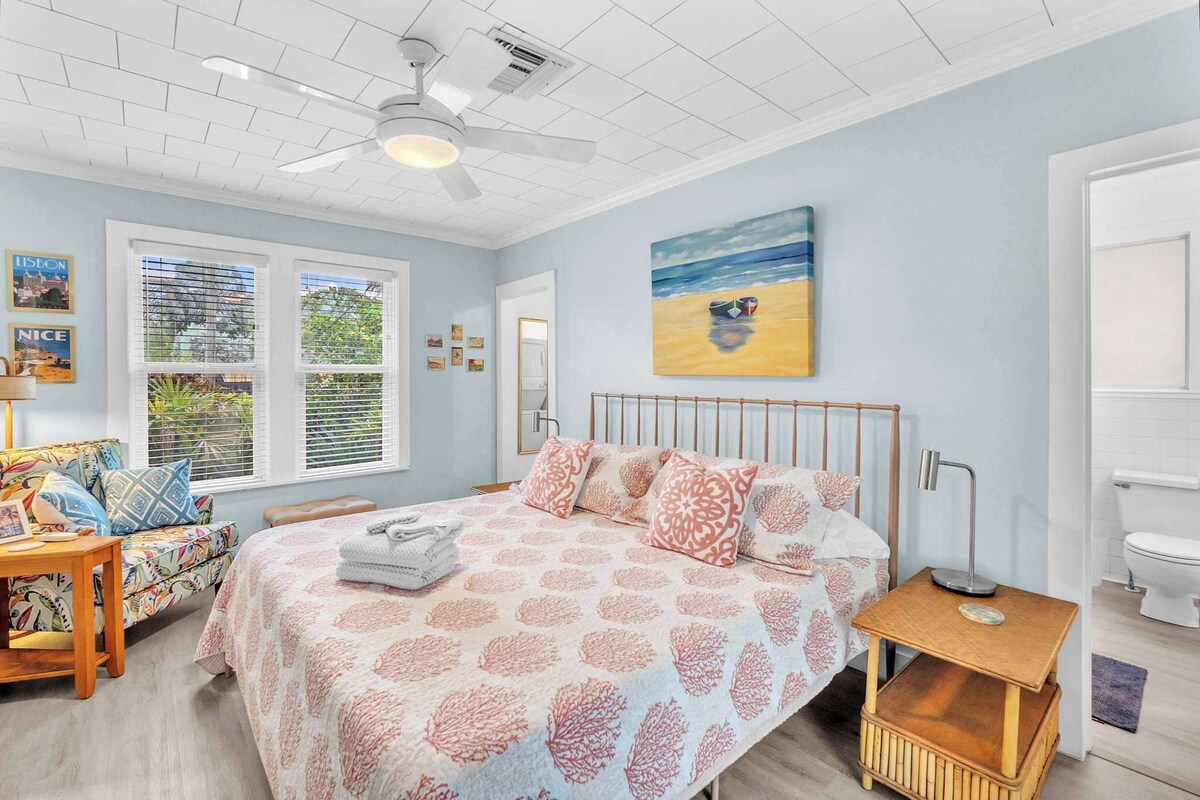 Summary: Welcome to Bromeliad Bungalow, a cozy yet quirky three-bedroom retreat full of South Florida charm. With a lush garden, vibrant character, and a location just minutes from downtown, it’s the perfect place to relax and explore. The Space: Tucked into a quiet pocket of Fort Lauderdale, Bromeliad Bungalow is a one-of-a-kind retreat that blends cottage charm with South Florida character. This three-bedroom home is filled with natural light, garden views, and playful, custom furniture that gives it a personality all its own. The primary bedroom features a king bed and a private en-suite bathroom, while the second bedroom offers a king bed — perfect for families or friends traveling together. The third bedroom has a single twin bed, making it a cozy nook for reading, resting, or simply enjoying a bit of quiet. Each space was designed with comfort in mind, keeping things simple, bright, and welcoming. The kitchen is fully equipped for cooking at home, with everything you need to prepare meals to enjoy inside or outdoors. Large windows throughout the home bring the outside in, framing the greenery and filling the bungalow with soft, natural light. Step into the lush garden and you’ll find plenty of space to unwind, whether you’re sipping coffee in the morning sun or winding down after a day in the city. Though you’re just minutes from downtown Fort Lauderdale — with its restaurants, shops, and nightlife — the garden and bungalow create a world that feels calm, quaint, and removed from the bustle. Bromeliad Bungalow is cozy, personal, and a little bit whimsical. It’s a place to relax, reconnect, and enjoy the simple pleasures of South Florida living. Our prices include all fees. No hidden fees.