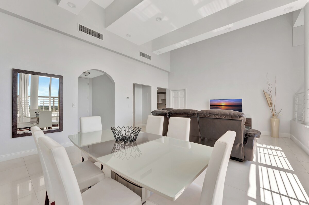 Welcome to our penthouse suite located directly on the beach. The suite has a king size bed, living room and a fully stock kitchen with a very spacious balcony. Come check out the city lights from the top of the penthouse. There are two restaurants on site. We have Florida's favorite tiki bar as well as our authentic Italian restaurant. Our prices include all fees. No hidden fees.