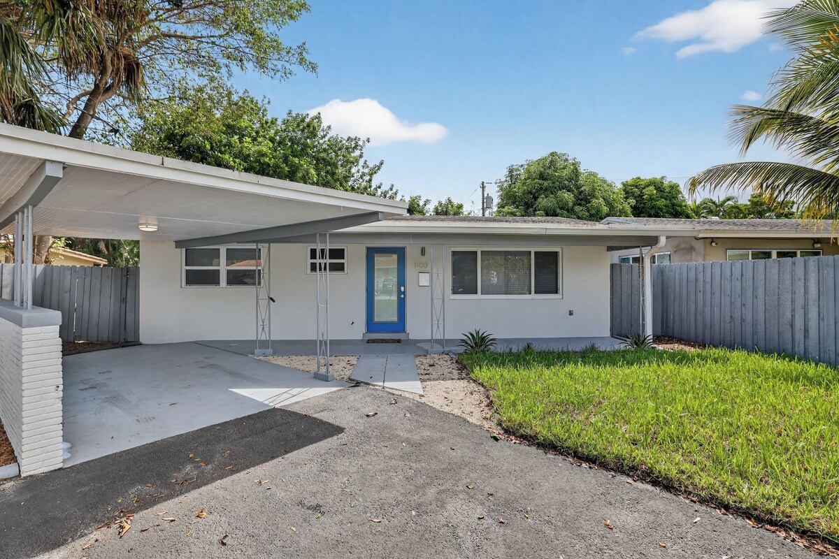 Discover this beautifully updated 2BR/2BA home in the heart of Fort Lauderdale, just minutes from Wilton Manors, Las Olas, and the beach. Enjoy marble floors, a modern kitchen with new stainless appliances, and a bright, open living space. Relax in the private backyard or take advantage of ample parking for up to 5 cars. Perfect for families, professionals, or long-term guests seeking comfort, style, and unbeatable convenience to top dining, shopping, and entertainment. Enjoy the perfect mix of comfort, great location, and lifestyle in this home, with a beautifully renovated interior and everything Fort Lauderdale has to offer just minutes away. Ideal for business travelers, families, or those relocating and seeking a flexible, convenient stay. Features: •Primary bedroom with a queen bed • Bedroom 2, with a Queen and bunk bed • Elegant marble floors throughout • Fully updated kitchen with stainless steel appliances & ample cabinetry • Spacious open-concept living area with stylish décor • Two full newly renovated bathrooms • Central A/C, high-speed Wi-Fi, and Smart TVs • Private backyard and lush landscaping •Parking: driveway (fits 4 cars) •Pet friendly Location & Nearby Recommendations Nestled just outside Wilton Manors, this home is less than 5 minutes from top spots in Fort Lauderdale: Dining & Nightlife •The Alchemist Café – chic brunch spot (4 min) •Rosie’s Bar & Grill – local favorite for American fare (3 min) •J. Marks Restaurant – modern American dining (6 min) •Las Olas Boulevard – trendy restaurants, cafés & nightlife (8 min) Groceries & Essentials •Publix Super Market – 3 min drive •Whole Foods Market – 7 min drive •Target – 8 min drive Parks & Recreation •Hagen Park – local sports fields & tennis courts (4 min) •Holiday Park – trails, playgrounds, and green spaces (5 min) •Fort Lauderdale Beach – only 10 minutes away! Our prices include all fees. No hidden fees.