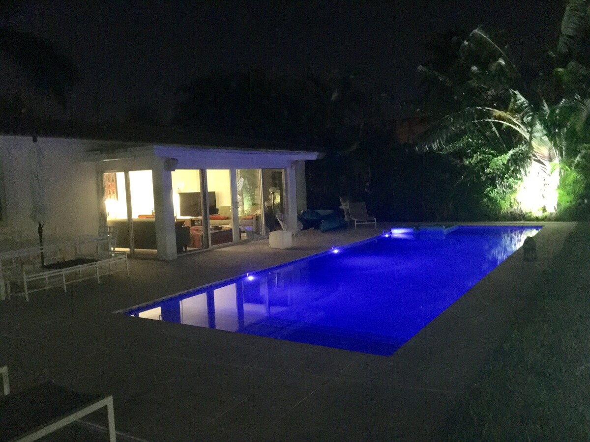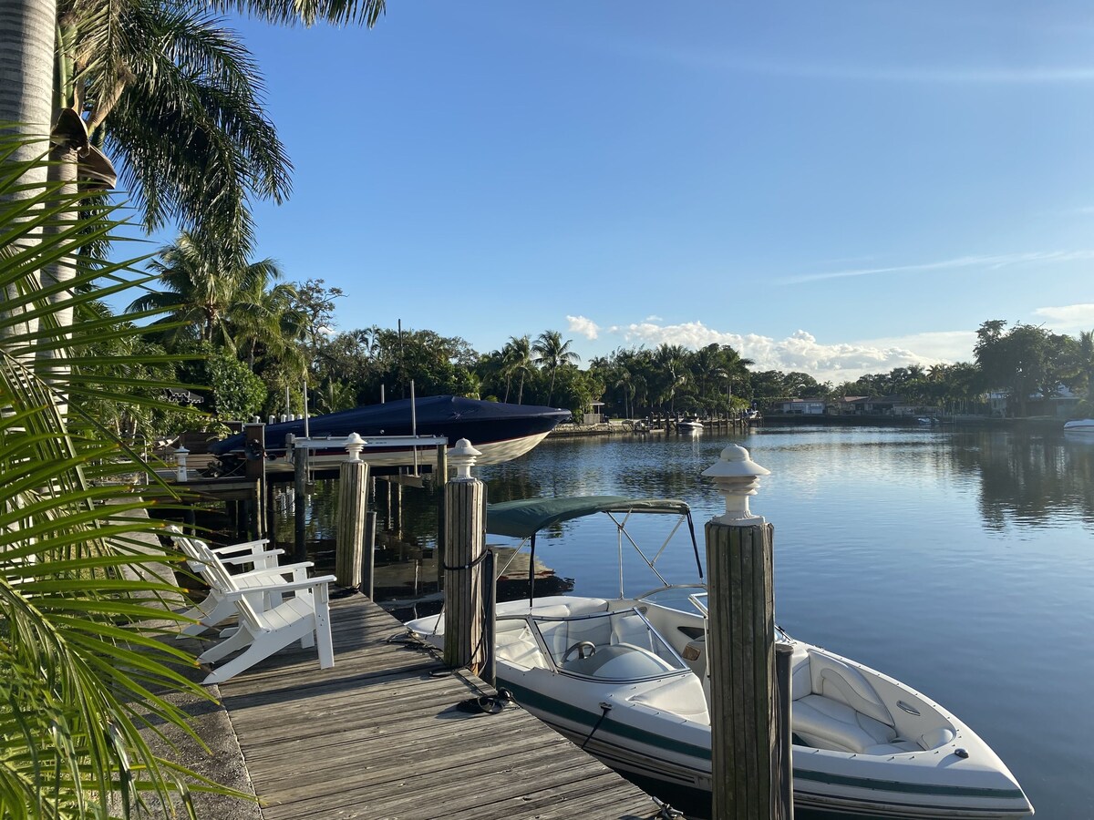 Stylish Mid-Century Florida house in a residential neighborhood. The house is perfectly maintained, high-end furniture (Roche Bobois ) and vintage pieces. The 42 foot salt water pool is right on the river. The house has plenty of light (impact windows ) and open onto the pool and the river via sliding doors (all have screens) .Enjoy the outdoor as much as the house, with a heated salt water pool , outdoor sound system, amazing river views, gas BBQ, designer outdoor furniture, 3 kayaks, Outdoor shower (hot and cold) and cabana/laundry room with toilet). The river side is lined with 4 beautiful Royal Palm trees. The private dock is the perfect location for sunset drinks :-). 3 Kayaks and 2 bikes are at your disposal in order to explore the Venice of the Americas. Fishing rods at your disposal too if you want to try your luck from the 70 feet seawall or the house private dock. Outdoor lighting, digital lock, nest thermostat. Vacation Rental Certificate of Compliance. Our prices include all fees. No hidden fees.