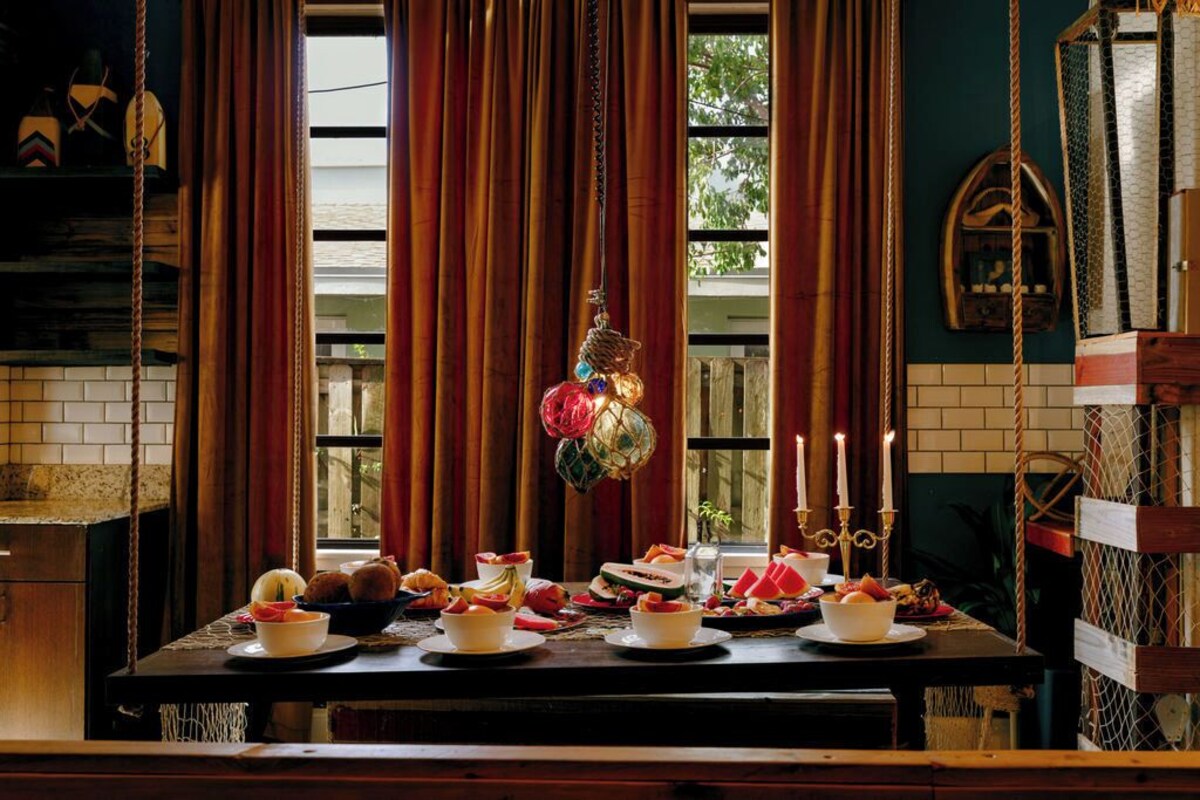 Just a short drive to Fort Lauderdale Beach, Wilton Manors, and downtown, you’ll be close to everything while enjoying the comforts of home. • Clawfoot Tub • Sun Loungers • Grill & Propane • Beach Supplies • Washer & Dryer • Star & Underwater machine Every corner of this home is designed to spark a little wonder. Settle in for a cozy night with the Chromecast-powered projector, transforming the living room into your own private cinema beneath the sails. Climb up to the crow’s nest loft, where you can gaze through the “periscope,” swap stories, and feel as though you’re charting the stars. The details are what make this house an ideal escape from reality—like the clawfoot soaking tub, a perfect place to unwind after a day of exploring, or the eclectic nautical décor that brings the Captain’s world to life. Thoughtful touches abound, from beach gear for your ocean excursions to board games and activities that keep the whole crew entertained. Here, every stay feels less like a getaway and more like a voyage of discovery, blending comfort, playfulness, and just the right amount of whimsy. MAIN HOUSE: SLEEPING ACCOMMODATIONS (3 bedrooms + loft) • Captain's Quarters: King bed • Mermaids Den: King Bed • Octopus's Garden: 2 Trundle beds (4 twins) • The Crow's Nest loft- 2 Twin beds GUESTHOUSE SLEEPING ACCOMMODATIONS • Bedroom: King bed • Living room: Trundle bed (sleeps 2) BATHROOMS (2 in main house/ 1 in guesthouse) • Shower tub combo in all 3 bathrooms PARKING • Parking for up to 4 cars • Guests may not park on the lawn • No on-street parking available/the car will be ticketed and towed by the city KITCHENS (1 in main house/ 1 in guesthouse) • Drip coffee pot (reusable filter provided) • Coffee filter provided • Toaster • Blender • Panini Press • Cookware/Serveware • Plates and silverware for max capacity+ TELEVISIONS/ WIFI • Chromecast and smart TV capabilities on all TVs • TVs in 2 bedrooms (Octopus room/ Guesthouse bedroom) • Projector in the living room of front house • TV in living room of guesthouse • Cable package not included • Free high-speed Wi-Fi LINENS • Extra pillows and blankets • ALL linens are professionally laundered and dried on high heat between each guest EXTERIOR • Sun loungers • Seating for 4 • Picnic table • BBQ grills (2) & propane • Clawfoot Soaking Tub BABY AMENITIES • Pack and play crib & sheet • High chair with a tray and safety straps • Stroller • Baby bath • Crib and sheet available for a $100 fee *Kindly request anything needed at the time of booking so we may reserve items and place them in the home before your arrival BEACH SUPPLIES We provide beach chairs, beach towels, a cooler and an umbrella for your use. PETS • Pets allowed on a case-by-case basis, must be approved in writing on the booking platform • $100 pet fee per animal, per stay. SERVICE ANIMALS: The only animals that are exempt from fees are service animals, and guests must disclose them prior to arrival. MAXIMUM OCCUPANY • Home sleeps 14 in beds • Maximum occupancy restrictions do not include up to 2 children under the age of 12 years old QUIET HOURS: 10 pm to 8 am DATE ALTERATION REQUESTS • Requests to change booking dates that would result in a shorter stay once the cancellation policy has gone into effect will not be approved. • Once the cancellation policy goes into effect, you may not request date changes for future dates that would allow for complimentary cancellation. HURRICANE SEASON June 1st - November 30th We encourage all travelers who book during this time frame to purchase travel insurance that covers natural disasters, as we do not allow cancellations outside of the agreed cancellation policy for inclement weather. SUPPLIES • Dishwasher detergent • Cleaning Supplies • Aluminum Foil • Garbage bags • Hand soap | Dish Soap • Laundry detergent • Shampoo | Conditioner | Bodywash • Towels: Bath | Pool | Hand | Face | Kitchen THE NEIGHBORHOOD Poinsettia Heights is a centrally located quiet neighborhood in the heart of Fort Lauderdale. Steps away from vibrant Wilton Manors and the Beach, and a short drive to Miami, the area is a perfect location to explore South Florida from. The location is perfect for those guests who decide not to rent a car. Sunrise Blvd, Federal Highway (US1) and the adorable outcrop that is dubbed 13th street (NE 13th St) are all within walking distance (under a mile). LOCAL FLAVOR Nearby you will find local gems such as Eucalyptus Gardens, Storks, Gulfstream Brewery, Lovelee Bakeshop, Croissan‘time, and Montce Swim. The Galleria Mall is just 1.5 miles away and there are plenty of places to rent Kayaks/ Paddleboards, dozens of mid-century modern vintage shops, and most importantly; the golden sands of Fort Lauderdale Beach. EVERYDAY CONVENIENCE Within 1 mile of the home, you’ll find: • Publix supermarket • Walgreens pharmacy • Dunkin’ Donuts • Middle River Terrace Park • Liquor store (open until 2 a.m.) • Gas stations, restaurants, and shops QUICK DISTANCES • Beach – 2.1 miles • Las Olas – 1.8 miles • Flagler Village – 1.3 miles • Wilton Manors – 1.5 miles • Downtown Fort Lauderdale – 3.2 miles • Fort Lauderdale Airport – 6.5 miles BRIGHTLINE TRAIN– 2.5 miles Miami: ~30 min West Palm Beach: ~30 min Orlando: ~2.5 hrs GETTING AROUND Landlubbers can head due south (to Sunrise Blvd) or east (to US 1 / Federal Hwy) to reach major thoroughfares where public transportation via bus is available, but Uber & Lyft is readily available. One block West of the home, there are two bus stops, one northbound and one southbound. We do not suggest public transportation in Fort Lauderdale as it's not fully developed as in larger cities. If you do not plan to rent a vehicle at the airport we suggest using Sixt rent-a-car on Sunrise Blvd. It's within a 5-minute drive from the home and has great vehicles for guests traveling i