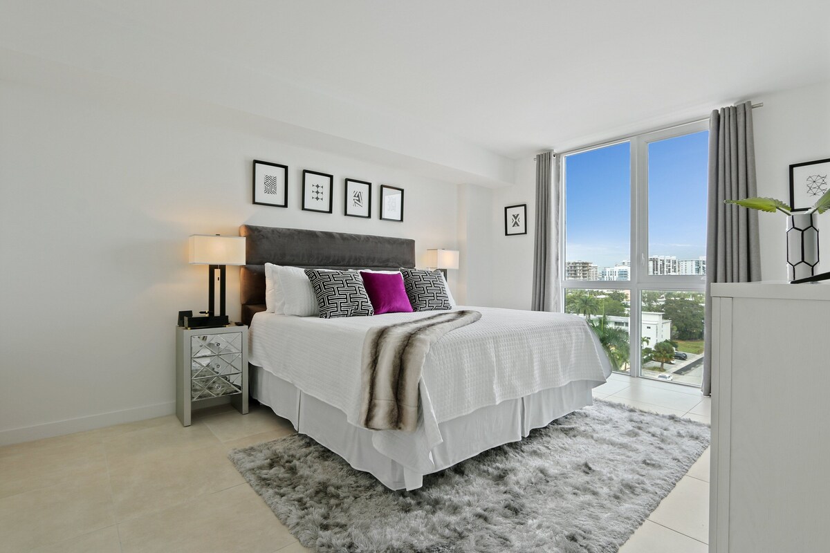 Ideal for vacation rentals, this luxury 1 bedroom condo unit is a stunning home base from which to explore all Fort Lauderdale has to offer. With several unexpected pops of color, the living room offers a plush sofa and side chair with lively decor. A flat-screen TV offers hours of entertainment and high-speed WiFi makes streaming all your favorite shows and movies a breeze. The sleek and modern kitchen provides everything needed to create either a simple snack or a complete culinary masterpiece. With stainless steel appliances, and generous work and storage space, it will be a joy to utilize this space. A convenient peninsula bar seats 4, while a round glass-topped dining table for 4 is just off the kitchen. Step out onto your own private balcony with sweeping views of the Fort Lauderdale skyline. Here is the perfect spot to sip your morning coffee, your or evening favorite beverage. If you`d like, enjoy an al fresco meal at the bistro table for 2. The soothing neutral tones of the master bedroom promote luxurious and restful slumber in the king-size bed with highest quality linens. Catch your favorite late-night talk show on the flat-screen TV. A spa bath is a truly decadent treat, with dual vanities and an oversized walk-in shower. We look forward to welcoming you to the Gale Residences and hosting your Fort Lauderdale vacation! New On-Site Dining Experience: Casa Playa Now Open! Enjoy a taste of Latin-fusion cuisine at the newly opened Casa Playa restaurant, now on-site at Tiffany House Condominium! House Rules: Check-in time: 4:00 PM Check-out time: 10:00 AM All guests must sign our rental agreement as mandated by Florida Law. If you have little ones we offer a Baby bundle: Pack-n-play with a thicker mattress & a high chair for $65 per stay. Baby bundles must be requested and paid 48 hours prior to your reservation start date. 🔹The minimum rental age is 25. A picture ID must be provided to the company no less than 72 hours before arrival. 🔹An accurate guest count must be provided 🔹No parties or events. If unauthorized persons are discovered on the premises, guests will be subject to additional fees and/or immediate eviction 🔹Quiet time is from 10pm - 8am 🔹No smoking or vaping. If evidence is discovered of either smoking or vaping, the guest will be subject to a fine of up to $1,000 🔹Commercial vehicles may be approved by management. Please inquire if you would like to bring your commercial vehicle. 🔹The property must be locked and secured when guests are not in it. 🔹This building has a $35/night valet parking fee. If your stay is 28 nights or more, the fee is waived. 🔹There will be no discounts or compensation if any changes in the amenities of the building, closures of pools etc occurs. 🔹We kindly request your assistance in providing your email address and phone number for the purpose of enabling mobile key access and completing building registration. Lack of a complete building registration 72 hours before the check-in date or refusing the use of the app will result in denied access to the condominium as per their policies. Pet Policy: This property is dog-friendly with an additional fee of $150, per pet. While staying with us, you are responsible for the actions of your pet. Please keep your dog(s) off the furniture and pick up all waste. All waste should be bagged and disposed of in the outside trash bin. Failure to comply with our Pet Policy will result in an additional $100 fee. Please let us know if you will be bringing your dog (only dogs are permitted, sorry). -Check-in details, including property information, local recommendations and more to be accessed via our Guest Experience app. This can be accessed via the app store download, or web link. DBPR:DWE1621089 Our prices include all fees. No hidden fees.
