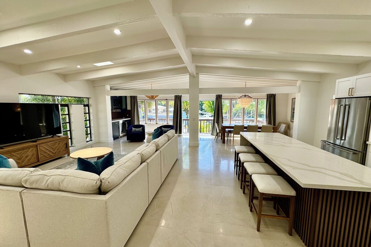 OUTDOOR SPACE: - Large, private, heated swimming pool and outdoor patio with loungers. -The patio has a stainless steel BBQ grill that uses propane and an outdoor dining area (Propane tanks are available upon request for a $40 charge) LIVING AREAS: Downstairs and Upstairs - 2 Formal dining rooms seats up to 8 and 10 - Oversized couches with large smart TVs. - Breakfast Bars for 3 and 4 - Bar - Private Sauna - Private Game room with pool table, video game controllers, and more. 2- KITCHENS: Fully stocked kitchens Coffee machine, tea kettle, toaster, blender, Ice maker, cookware, glassware, dishwasher, refrigerator with filtered water dispenser, freezer, and microwave. BEDROOMS: (7) 2 Bedrooms downstairs and 4 bedrooms upstairs. The Private Oasis sleeps 15 guests in comfortable beds. The 7, large bedrooms all have Smart TV's. - Pac and Plays and high chairs on site. - Premium Air mattress available. BATHROOMS: (5) 2 Bathrooms downstairs and 3 bathrooms upstairs. All bathrooms are provided with a starter set of toiletries (TP, soap) and plush towels. Hairdryers are also available. INTERNET: Highspeed and wireless throughout. GUEST ACCESS: - The personalized self check-in instructions will be sent three days prior to arrival. CLEANING: - All of our properties are professionally cleaned and sanitized up to CDC guidelines and inspected before each stay to ensure your safety. - Dishwasher pods are provided - Washer and dryer with a starter set of laundry pods provided. LOGISTICS: - Check-in: 4:00 PM. - Check-out: 11:00 AM. - An early check-in or late check-out time may be available, please inquire about availability and pricing. TV's: All nine (9) of our TV's are Smart with access to log into your favorite streaming channels. MAINTENANCE SCHEDULE: - Weekly Landscaping service usually on Wednesdays or Thursdays in the morning. - Weekly Pool cleaning service usually on Mondays and Thursdays in the morning. POOL: Towels included. Pool is heated for a $15 per day service fee between November and April. Please note there is no lifeguard on duty and we ask that all guests enjoy the pool responsibly. The property owner is not liable for any pool-related accidents, drowning, or bodily harm/personal injuries. No diving is permitted. No glass is permitted in or near the pool, the kitchen is supplied with plastic cups. GARBAGE: The city of Fort Lauderdale removes garbage every Wednesday and Saturday morning. We provide three garbage bins on the side of the house. We ask that you please put out any used garbage bins in the front of the driveway Tuesday night and Friday night prior to collection. If you could please bring the bins back by the side of the house we would appreciate it. PARTIES & EVENTS: We do not allow parties, receptions or events. The home is located in a residential neighborhood and local ordinances dictate no excessively loud music or noise after 10PM. This is our most important rule that can result in the termination of your reservation along with additional fees. If you have any questions regarding entertaining on the property please contact us. PARKING: The driveway is located in front of the property and accommodates four (4) cars. PETS: Small pets are permitted upon request, please note, there is a $120 pet sanitation fee per pet for the duration of your stay. PERSONAL BELONGINGS: ValGal isn’t responsible for any package delivery or personal belongings left at the property after check out. Please inquire directly for discounts on long term stays. We are looking forward to hosting your unforgettable stay! Our prices include all fees. No hidden fees.