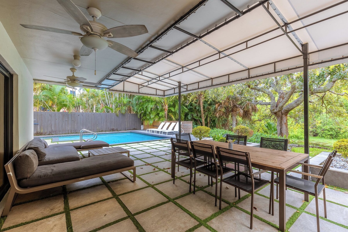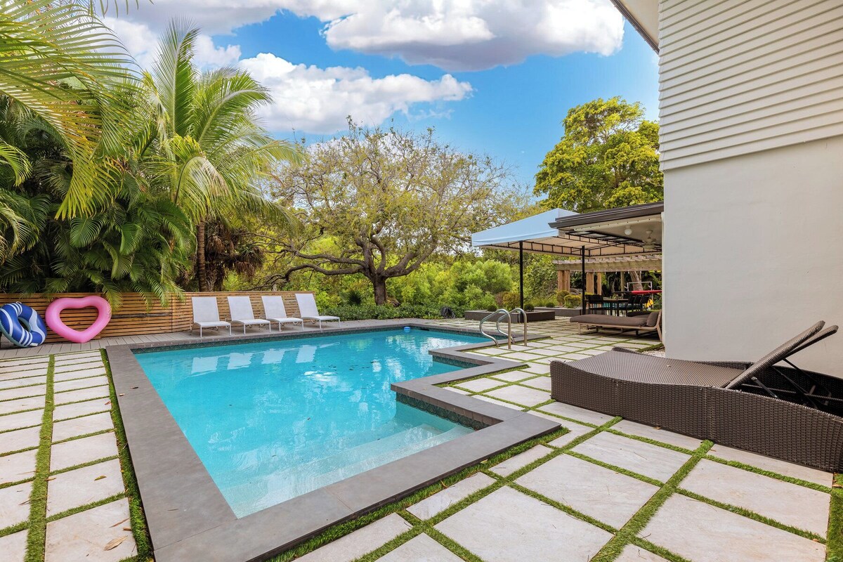 Welcome to Oasis Beach Haven! The perfect luxury home for your vacation. This property is a guest favorite for everyone. With less than a 1 minute walk you arrive at one of the best beaches in all of south Florida. Birch State Park joins the back of the property, giving you peace and beautiful nature scenery. Kayak, paddle-board, or canoe the lagoon from right in the backyard; all included. The property: Oasis Beach Haven sleeps 14 total guests: 10 adults and up to 4 children under the age 12. The property layout is the following: Upstairs: Master - 1 king bed & 1 queen sofa-couch Bedroom #2 - 2 queen beds Both with ensuite bathrooms Downstairs Bedroom #3 - 1 king bed Bedroom #4 - 1 king bed & bathroom ensuite Bedroom #5 - 2 twin beds Centrally located living room Huge kitchen with dual sinks and dishwashers Kitchen is fully equipped Dining table and breakfast table Washer & dryer located in garage Outdoor area includes: Large, covered area with outdoor couch & chairs Outdoor dining table & chairs Heated pool Large backyard area Driveway can support up to 8 standard vehicles (no street parking allowed) Amenities provided: Beach gear [towels, chairs, wagon, umbrella] Mini golf green [putters & balls onsite] Lagoon gear [kayak, canoe, paddle-board, & life vests] We have resources for additional services for special requests; golf carts, bicycles, private chef, in-stay cleaning services, and much more. Early check-in and/or later check out may be available depending on scheduling. Please contact the host for rates and availability. Guest access: Guests have full access to the property. 2 small closets are locked for cleaning storage. Guests have access to full driveway; can fit up to 8 standard sized cars. Interaction with guests: The property manager or one of his direct assistants will always be available for any guests needs relating to the property and their stay. Other details to note: Maximum adults 10 plus up 4 children for a maximum of 14 guests The host is available nearly 24/7 with any black-out times being disclosed at check-in. All guests are required to follow local ordinances and request all neighbors at all times. Pets are allowed however they must be disclosed, and pet cleaning fee must be paid so deep cleaning is covered for future guests. No exceptions. Reservations over Holidays; specifically, Christmas & New Years have a 12-night minimum if you want both Holidays or a 6-night minimum if you choose one or the other. Please send a request to the host with any questions or clarification. Our prices include all fees. No hidden fees.