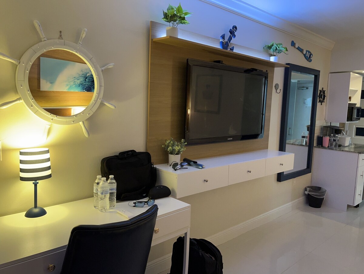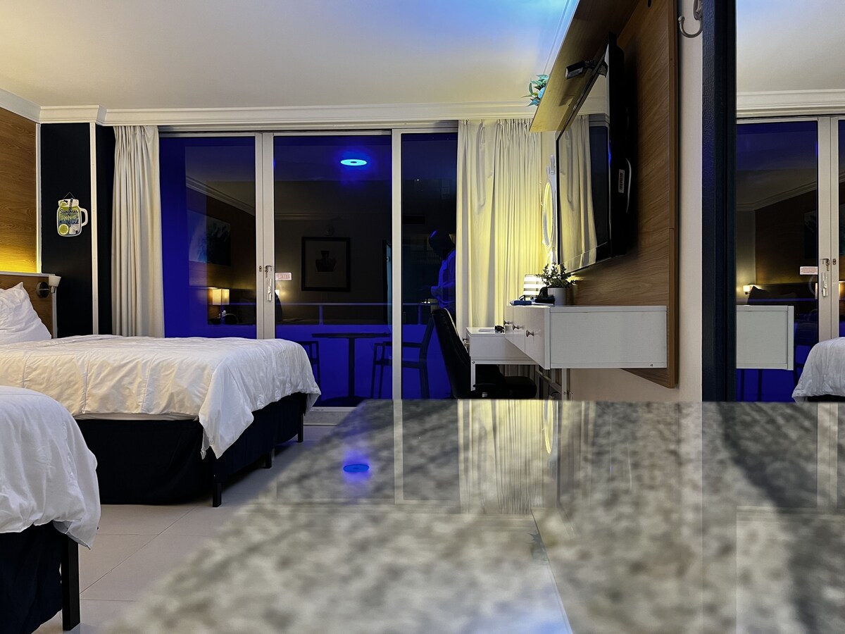 Beautiful CLEAN Modern Hotel room with amazing Ocean Views! Located right on the beach! Enjoy a stylish experience at this centrally-located place. Walking distance to everything! Restaurants, banks, bars. There's a Tiki bar with great food and the best happy hour in town, with a DJ at night. Have a drink or eat on the beach. Chairs & Umbrellas available! Enjoy the Spa or jet ski! For a nice dinner night out, the Fancy Italian restaurant is located at the hotel. This place says Vacation Fun!