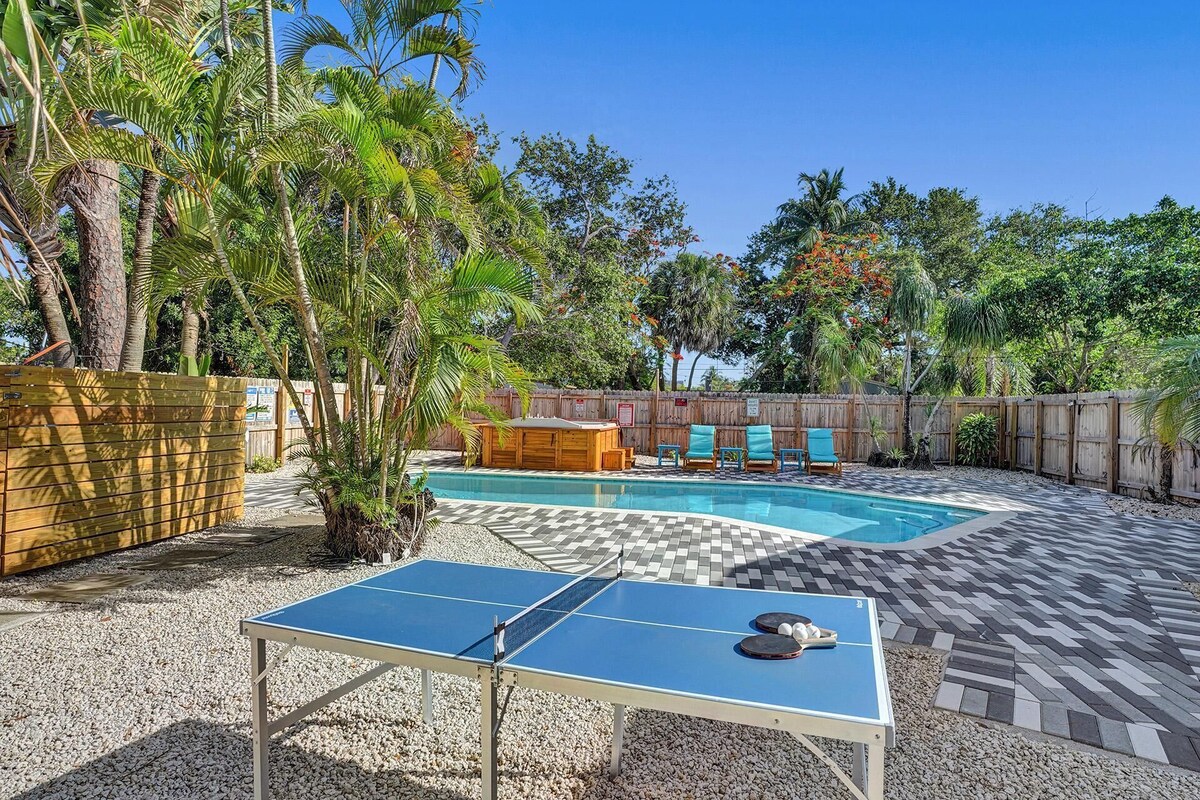 This private 10,000 sf corner lot modern home, has 3 beds + 2 baths, amazing heated pool w/LED color lights, hot tub/ jacuzzi with waterfall. Master bedroom has a jacuzzi & shower. Backyard has a gazebo, grill, fire pit, ping pong table, smart TVs in every room, Ice maker, bring your pet, workstation, organic hand made organic soaps, toiletries, lots beach equipment, outdoor games, board/table games and plenty of free parking. Just 10 mins to the beach, upscale las Olas & to the airport. This house is located in the center of the best Fort Lauderdale has to offer such as shopping the chic boutiques on Las Olas Boulevard, you can learn about the local history, art and nature museums in town, the diverse gastronomy or enjoy endless coastlines and white sands. Centrally located near to everything! The Aqua Oasis! Come relax and fall in love with your home away from home. This house is located in the center of the best Fort Lauderdale has to offer such as shopping the chic boutiques on Las Olas Boulevard, learning about the local history, art and nature museums in town, the diverse gastronomy or enjoy endless coastlines and white sands. Centrally located near to everything! House decor features a chic modern classy beach style. Its unique design and playful decor make it an ideal getaway! When you stay at this 3-bedroom, 2-bath vacation home, you'll have everything you need for a private and worry-free stay! You can work from here too! EXTERIOR/OUTDOOR SPACE: -Private patio -Hot tub -Pool (heated) -Three loungers -Outdoor seating/picnic table -BBQ grill with propane provided -LED light in pool and hot tub bar * Heated swimming pool with LED color Lights * Jacuzzi with waterfall and LED color lights * BBQ grilles and Gazebo by Pool * Ping pong table *Heated spa with casing bar and stools * Corn hole board game AMENITIES: * Free onsite, secured parking for 2 cars. * High Speed Internet/Wifi Gigabit Extra Plan Download speeds: up to 1200 Mbps Upload speeds: up to 35 Mbps and Choice TV Plan with smart TV in each room With Premiums StreamPix Channels * Fully stocked & equipped kitchen * Iron and iron board * First aid kit * Foam ring buoy * A luggage rack on each bedroom * Ceiling fans and portable fans * In-unit washer & dryer * Ultra HD Smart TV in the living room 65 * Ultra HD Smart TV 55 in master Bedroom * Ultra HD Smart TV 43 in 2nd Bedroom * Ultra HD Smart TV 43 in 3rd Bedroom * Full length mirror in each bedroom * Living room has a memory foam sofa bed * Central A/C & heater * Smoke alarm/CO detector/Fire extinguisher * In Unit Washer & Dryer * Keyless Entry (Self Check-In) * Hangers * Tea pot * Coffee maker * Ice Maker * Rice cooker * Crockpot * Toaster * Work station provided * Self check in with Digital code * Bed rail's * LED Touch screen Vanity mirror * Toiletries * Dish/Dishwasher/hand soap * Beach chairs and umbrellas * Plenty of game boards And more! House decor features a chic modern classy beach style. Its unique design and playful decor make it an ideal getaway! When you stay at this 3-bedroom, 2-bath vacation home, you'll have everything you need for a private and worry-free stay! You can work from here too! NEAR BY: 10 mins to upscale Las Olas Circle and Las Olas Boulevard Close to The Galleria Mall, business hubs, shopping casual, fine restaurants and more Is centrally located a short drive or Uber/Lyft ride 15 Mins From Fort Lauderdale Beach and Las Olas Beach 8 Mins from Fort Lauderdale-Hollywood International Airport (FLL) 10 Mins from the Seminole Hard Rock Hotel & Casino 18 Mins from the Hard Rock Café Stadium 15 Mins from Lauderdale-by-the-Sea 10 minutes from famous cruise Port Everglades. Located In the heart of Greater Fort Lauderdale and the City of Hollywood, FL, Port Everglades is one of the busiest cruise ports in the world 30 minutes from cruise Port Miami, 1015 N America Way #2, Miami, FL 33132 8 minutes from Fort Lauderdale Water Taxi - All Day Pass. Water Taxi Stop #1. The best way to see Fort Lauderdale and Hollywood! Hop on & hop off at any of the 15 stops. Quick fuel up: Before the beach or parks: Wawa, Walmart and gas station is a 2 minutes ride. Around the area goods for shopping: 7 minute drive to Publix 2 minute drive or a 7 minute walk to Walmart, Krispy Kreme and to Marshals… in case you forgot your bathing suit! :) BUSINESS: Nice, quiet and comfortable place with a huge patio. Also, minutes from local coffee shops, 3 minutes drive to Starbucks and business hubs. TRANSPORTATION: This place is close to everything!!! It’s easy to access the rest of the city biking or either by Lyft, Uber, cab and public transportation. 2 minute drive or 6 minute walk to Broward Blvd Tri-Rail Station/Park & Ride and the Amtrak/Tri-Rail Park. 7 minutes drive to the Brightline Fort Lauderdale for a 35 minute ride to Miami onsite parking available. Come and stay in the most complete home in Fort Lauderdale. THE SPACE: 1,100 Sq Ft| 10,000 sf huge private lot |Recently Renovated | Free WiFi | This house is fully equipped with brand new electronics and appliances. Centrally located to ensure that whether you're just stopping through on your way to a cruise or staying for the city's long list of 'must-sees', you have all of the essentials for a positively memorable getaway! INDOOR LIVING: Smart TV w/ cable, dining table, modern appliances & furnishings, breakfast bar with three barstools. Living room has a couch. beautiful common bathroom shared with bedroom two and three. BEDROOMS: Master Bedroom: Queen bed with Jacuzzi/whirlpool and shower Bedroom 2: Queen bed Bedroom 3: Has two full beds and two twins. (Two bunk beds). -Nightstand -Closet BATHROOMS: -Master bedroom has an ensuite bathroom, stand-up shower and separate jacuzzi -The guest bathroom is in a hallway and has a glass-enclosed shower EXTERIOR/OUTDOOR SPACE: -Private patio -Hot tub -Pool (heated) -Three loungers -Outdoor seating/picnic table -BBQ grill with propane provided -LED light in pool and hot tub bar * 
