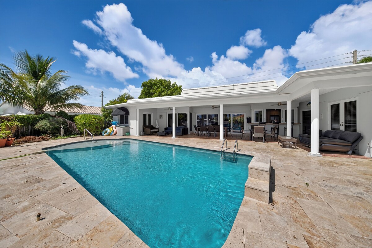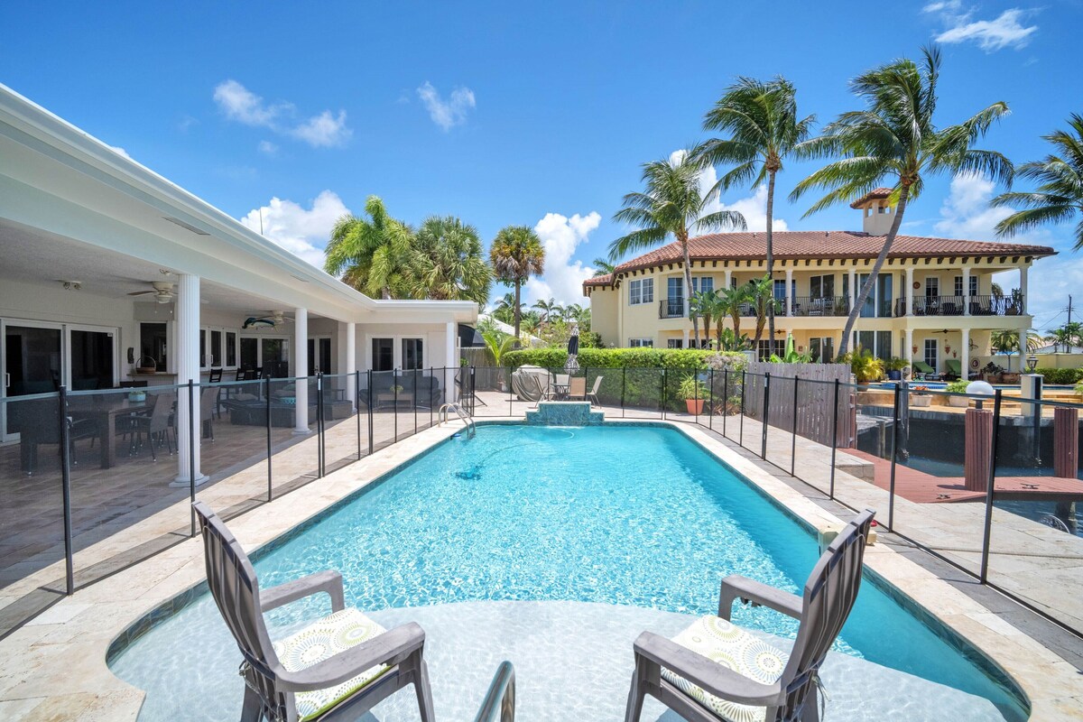 *BRAND NEW LISTING* Bayview Villa is the perfect 5 bedroom waterfront oasis to enjoy with family and friends! Centrally located 5 minutes from the beach, 5 minutes from dozens of restaurants/nightlife and a 20 minute drive to the airport for your convenience. Enjoy our private pool, dock for boat, updated kitchen, grill, all with an incredible view of the canal! The Bayview Villa is suitable for up to 10 guests looking to relax by the pool while enjoying the incredible waterfront canal view! It is conveniently located 15 minutes from the airport, 5 minutes from restaurants/nightlife and the beach! Master Bedroom - 1 King Bed & crib Bedroom 2 - 1 King Bed Bedroom 3 - 1 Queen Bed & 1 Double bed Bedroom 4 - 1 Queen Bed Bedroom 5 - 1 Queen Bed Here's a few common questions to help you decide if the Bayview Villa is a good fit for your getaway: Can we cook at the house? What about BBQ? Absolutely! The kitchen is fully equipped with plates, bowls, utensils, wine glasses, pots, and pans. The refrigerator is equipped with filtered water and has an ice maker. We also have a BBQ on property for you to enjoy (filled propane tank if provided free of cost). We simply ask that you clean the grill after use for the next guests. The home is also equipped with a single cup keurig, coffeemaker, toaster and microwave. Is the home suitable for children? Absolutely! There is plenty of space to sleep multiple families and a child proof fence preventing unsupervised entrance into the pool and intracoastal. We have even equipped the master bedroom with a crib with infants/toddlers! What about outside? Is there ample seating? Yes! There is a cushioned couch patio set which seats 6 along with a outdoor dining table and 6 chairs. On the side of the house with the hot tub includes another table and 4 chairs. Around the pool are 4 lounge chairs as well. Plenty of seating for everyone! What about the TV situation? We have 4 TVs, one located in the family room, Master bedroom, Bedroom 2 and Bedroom 3 with Rokus attached to them allowing you to stream any networks you subscribe to! If you're still deciding or have additional questions, please do not hesitate to reach out! *Please note: A video camera monitors the outside of the home for safety. One camera is mounted outside the garage, the front door and two facing the deck and pool area* Our prices include all fees. No hidden fees.