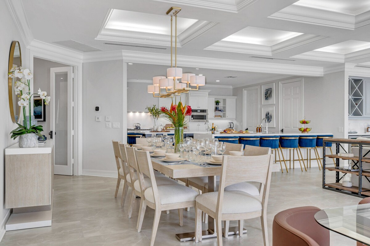 Modern Coastal villa par-excellence. Observe as the yachting capital of the world reveals itself though floor to ceiling windows, from the heated pool, the deck featuring a fire pit or the private beach*. This three-story villa sits on the edge of Harbor Inlet overlooking the Port Everglades waterway in one of Fort Lauderdale's most exclusive neighborhoods. The Ocean with its tropical beach is walking distance. Taking coastal living to the next level. * private beach reveals during low tide. SILVER WINNER - BEST PLACE TO WATCH THE SUNSET Enhanced cleaning practices implemented. THE SPACE Harbourview Key can accommodate a total of 16 guests including children (up to 12 adults over the age of 13). Additional accommodation available at adjacent properties - expand your stay with Hemingway Key (up to 14 guests) and Coconut Key (up to 10 guests) This modern coastal open floor plan three-story villa, valued at $10M, offers: - Elevator access to all three floors - 6 bedrooms - 5 full-bath, two half-bath - Game room (foosball, Smart TV) - Living room (85-inch smart TV) - Wet bar - Open gourmet kitchen - Dining table fit for twleve - Office space - Laundry room - Dog wash Outdoor - Front courtyard with a croquet set, table tennis and lounge area - Backyard overlooking the Harbor inlet - Heated swimming pool - Overwater deck with a fire pit - Private sandy beach at low tide. - Outdoor dining area fit for ten - Covered patio - Grill area - Driveway can hold up to 5 vehicles + Savor serene nights in lighter-than-cotton bedsheets, Indulge in bath rituals with natural Pure Fiji products and opulent towels. + Indulge in entertainment with Smart TVs in the living room and each bedroom. + Tune in your favorite music and podcasts streaming through the Sonos portable speaker. + Gigabit WI-FI is available throughout the property. Amenities - 4 bicycles are available for your use - 2 kayaks are available for your use - Beach gear is provided (4 beach chairs, cooler, beach cart) - The startup kit includes some coffee pods, salt, pepper, oil, a few trash bags dishwasher and laundry pods. We offer provisioning services if you would like additional items. - Full-size crib available Additional services - Street Legal Golf Carts – book it for the entirety of your stay for $150 per day.* - Elevate your stay with additional services including Chef's, provisioning, housekeeping and more. - Early check-in and late Check-out OTHER THINGS TO NOTE Our Guest Relations Managers will be at your service every day from 9 am to 11 pm. In case of emergencies, our support staff is available 24/7. Our curated properties are in highend quiet neighborhoods. Guests will be expected to be respectful of the property, neighborhood and neighbors. All reservations over Christmas and New Year's Eve require a minimum of 7 nights and must cover the following dates: December 20th to 27th or December 27th to January 3rd (+/-1 day). Please contact the host before making your reservation. -------------------------- By making a reservation you are confirming you have read, understood and accepted local rules, regulations and policies regarding vacation rentals. Full terms and conditions can be found in the Rules Section. Please contact us prior to booking with any questions or concerns. *Listed prices do not include taxes and fees. Latitude Key assists arranging third-party services; by accepting, renters release the property owner and managing host from related claims as they are not affiliated. HOUSE RULESTRUST AND SAFETY: The SafelyStay, Inc. Trust and Safety Fee (already paid during booking) includes up to $10,000 of accidental coverage for contents damage and up to $100,000 coverage for accidental property damage and bodily injury. The Trust and Safety Fee is refundable only if the reservation is canceled in writing at least twenty-four (24) hours prior to the arrival date. Any deductible or minimum claim amount will be the responsibility of the Guest, and the Manager will process using the form of payment on file for Guest. GUEST VERIFICATION AND AGREEMENT: All guests will be required to sign a simple rental agreement and be verified by SafelyStay in order confirm the reservation and occupy the property. By booking, the renter gives permission to SafelyStay, Inc., to verify their identity, and check criminal databases in order to confirm their reservation. Please contact Safely at Concierge@Safely.ai, if you have any questions. AGE RESTRICTIONS: The reservation owner is required to be at least 25 years old NUMBER OF GUESTS: The reservation must list the exact number of guests. Maximum occupancy is 12 adults and 4 children under 13. Any more than the maximum occupancy or than listed on the reservation residing at the property will result in immediate dismissal, and no refund will be given. After the 12th guest, there is a $100 per night per guest charge added to the reservation. This fee is already included in the price when booking as long the guest count is listed correctly as required. NO PARTIES / NO EVENTS: No Parties, Events or Gatherings without written approval from Manager. Guests shall not have parties or events at the home without obtaining prior approval of Latitude Key and payment of additional fees. Parties and Events may require a member of Manager staff on site for approval. Some properties and/or communities do not allow events of any kind, and all approvals shall be in Manager's sole discretion. All properties are equipped with a NoiseAware noise level monitoring system. Any sustained period of loud noise that causes the system to trigger an alert to Manager is grounds for immediate removal from the property without refund. PETS: Approved pets are welcome; a non-refundable $250 pet fee shall apply. Please observe the following pet rules: No pets on any furniture or bedding; remove all pet hair to avoid additional cleaning time/charges; All waste must be picked up and placed in the garbage cans tied securely in trash bags