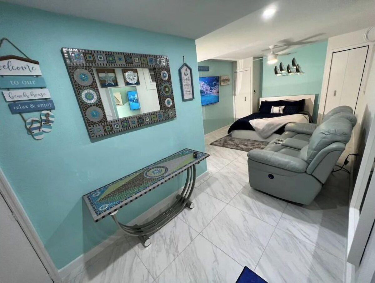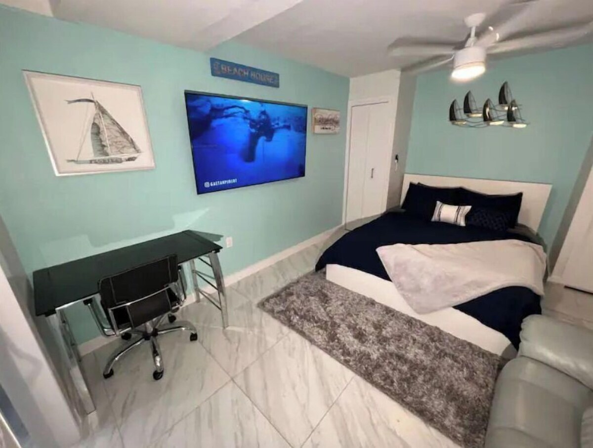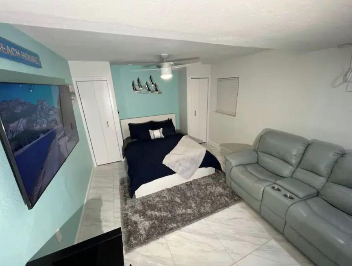 ★30 Days min stay★ Enjoy your stay in Florida in this cozy Flamingo Studio , newly remodeled ! This studio is centrally located in the heart of Fort Lauderdale, a short drive from downtown, beaches, wonderful local coffee shops and restaurants. WIFI and parking included We know how important it is to feel comfortable & relaxed when you arrive back from a long day of sightseeing. This idea is what inspired us to build our studio and provide everyone that stays a place to recharge relax and enjoy The space Aqua green, white, and marble color tones creates the stylish simplicity of this Zin feeling of a studio. The minimal décor is bursting with bold color, especially with the ambient sounds and image from television. You'll almost feel like you are on cruise with all the appliances and materials you'll ever need. ★ Pet Friendly★ Please send us the type of pet, size, weight and breed .ONLY THEN WILL WE CONFIRM if we can allow a pet - $250 fee per MONTHLY stay ★ Shared Laundry-coin operated★ ★ 1 Free parking space★ Our prices include all fees. No hidden fees.