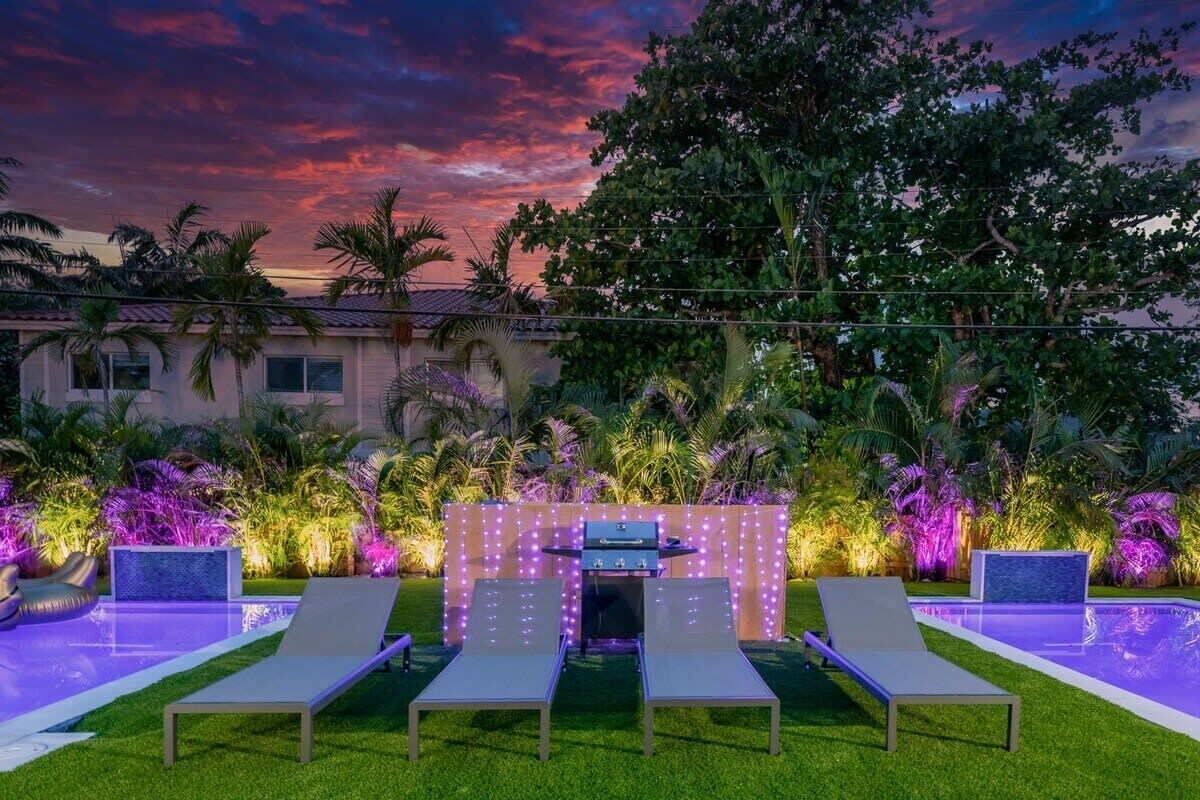 Summary: Step inside The Las Olas Compound and you’ll feel like you’ve checked into your own private resort — two sparkling pools side by side, palm-lined privacy, music in the air, and the effortless comfort of Miami Luxury Access hospitality. Whether you’re relaxing under the sun or entertaining your crew, this space was made for memorable weekends and luxury living. The Space: Welcome to The Las Olas Compound by Miami Luxury Access — Fort Lauderdale’s ultimate dual-pool retreat designed for large groups, celebrations, and unforgettable getaways. Located just minutes from Las Olas Boulevard and Fort Lauderdale Beach, this newly built luxury duplex features two private pools, lush tropical landscaping, and a modern resort-style vibe that blends Miami flair with total privacy. Property Highlights 8 Bedrooms / 4 Bathrooms across two full units — sleeps up to 24 guests comfortably 2 Private Heated Pools with loungers, floaties, and shaded seating Massive Turf Backyard perfect for yoga, games, or small gatherings Modern Designer Interiors with open layouts and premium furnishings Smart TVs, Fast Wi-Fi, and Central A/C throughout Fully Equipped Kitchens with quartz countertops and stainless-steel appliances Outdoor Dining & BBQ Grill for poolside meals Ample Parking & Secure Entry Ideal For Family reunions and multi-family stays Corporate retreats and executive getaways Bachelor/bachelorette weekends Group travel and friend gatherings Location Nestled in Progresso Village, you’re less than: 5 minutes from Las Olas restaurants & nightlife 7 minutes from Fort Lauderdale Beach 10 minutes from FLL Airport Walking distance to coffee shops, breweries, and parks Please note that heating the pool incurs a fee of $300 per stay and must be requested 48 hours prior to your arrival. We welcome your furry friends at a fee of $250 per stay. Please message us requesting a pet fee when you book. Pool Service: The pool is skimmed prior to the guest's arrival and gets professionally serviced on Wednesdays. Landscaping Services: To ensure the garden, lawn, and surroundings are well-kept, the lawn maintenance is done on Thursdays. Free parking is available in the driveway for up to 6v vehicles. We also offer discounted rates for our guests on Exotic Car Rentals and Yacht Charters. Please respect the neighbors and make sure there is no noise outside after 10:00 p.m. We want you to enjoy your stay but do not allow parties or events. There is also no smoking inside the house. There are fines up to $750 for violating house rules. Guest Access: Guests will have access to both units, the backyard is connected. The Neighborhood: 10 Minute drive away from the amazing ft Lauderdale beach, few minute drive from Las Olas Strip in downtown Ft Lauderdale featuring lots of nearby restaurants, Lounges Nightclubs and Shopping Areas. This property is located 15-25 Minutes away from the FLL Airport. 18-25 Minutes away from Fabulous Hard Rock Casino. This is a Quite and family oriented Neighborhood. Getting Around: Uber is your best option. Other Things to Note: Get ready to have the best time of your life! Our prices include all fees. No hidden fees.