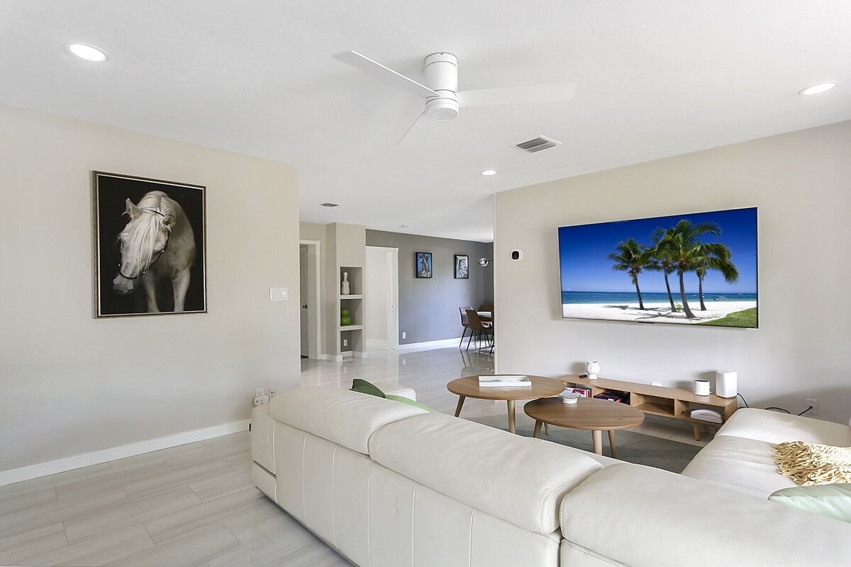 Emerald Palms is the ideal home to kick back and relax in. Only a short distance to the beach and local activities, this calm, stylish space has many amenities. There are four bedrooms and plenty of sleeping options. The light filled interior is set with an open floor plan and immaculate furnishings. The bathrooms and kitchen have been recently remodeled. The exterior boasts a large covered lanai with sitting and dining area. Outside is a tiki hut, heated pool, hot tub, bbq, and lounge chairs . This home has been remodeled and furnished with immaculate care. Designed with an unwavering attention to guest comfort, this newly renovated retreat is your key to a sublime Sunshine State getaway. -A swift drive to the bustling Las Olas district or to the FT. Lauderdale Beaches. -Smart TVs equip every room for your entertainment needs. -A fully appointed kitchen, complete with essentials, Keurig and coffee pods. -Business friendly with a private workstation and rapid Wi-Fi. -An inviting outdoor living environment centers around a large covered lanai, heated pool, spa, dining area, lounge chairs, tiki hut and various entertainment areas. -Propane BBQ grill for your enjoyment. -Comprehensive amenities, from linens to toiletries, for your convenience. -Family friendly with a pack n play, select books and an assortment of games. -Experience total privacy and freedom - every inch of the home, garden and pool area is exclusively yours to enjoy. Whether you require baby supplies, housekeeping, a private chef, aquatic adventures, or rentals of any kind, we've got you covered. Our extensive network of top-notch local vendors ensures your every need is met for an unparalleled vacation. Our prices include all fees. No hidden fees.