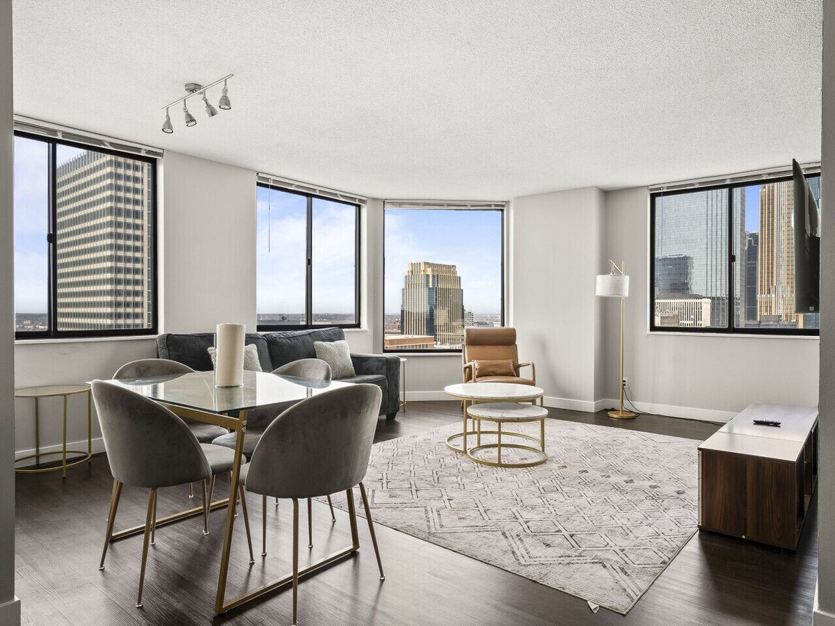 Experience stunning views from our stylish condo, just 5 minutes from US Bank Stadium and a short stroll to shops and restaurants. With quality furnishings throughout, it’s designed for both comfort and elegance. Enjoy FREE parking in the attached garage, 24/7 security, and complimentary coffee/espresso in the lobby. Take advantage of the pool, spa, gym, rooftop lounge and grill, and conference room. Your perfect urban getaway awaits—book your stay today! At 612 Stays you can expect all the luxury and amenities of a hotel, but with more space to stretch out and feel at home. Our mission is to provide you with more space, less contact, and modern design. Whether you’re traveling for business or leisure, all of our suites have room to live or work with keyless entry, and exceptional cleaning standards. ✔ FREE PARKING ✔ Fully Equipped Kitchen ✔ Comfortable 2 Bedroom w/King Bed ✔ Pets Welcome ADDITIONAL FEE (HOUSE RULES) ✔ Office Desk ✔ Wi-Fi ✔ 24/7 Gym ✔Dog Wash Our comfy 2 bedroom apartments are the perfect spot for six guests, with king-sized beds and full bathrooms. Unwind in front of your entertainment center that comes with WiFi and a Roku. Better yet, cook up a quick meal in our kitchenette. Our apartments have everything you need to absolutely fall in love with Minneapolis, including tons of natural light, ample closet space, and even a washer and dryer. See you soon! ★ LIVING ROOM ★ Ideal for relaxing and enjoying the company of friends and family while watching a good movie or show. ✔ Comfortable Sofa with Pillows ✔ Accent Chair ✔ 55\ t need to bring your own. ✔ Bath with a Shower ✔ Wash Basin ✔ Mirror ✔ Toilet ✔ Towels ✔ Essential Toiletries Other Amenities ✔ Washer & Dryer in unit ✔ Child friendly- Pack N Play, high chair included (provided by third party, see below) ✔ High speed Wi-Fi ✔ 1 minute to highway ✔ King Sized Bed ✔ Entire 2-bedroom apartment ✔ 24/7 Complex gym ✔ Self check-in ✔ Peaceful and quiet but also centrally located in Playhouse Square ✔ COVID-19 cleaning ✔ Night time security ✔ All kitchen essentials provided ✔ Office space ✔ 55" TV re delighted to offer you the option to enhance your stay with baby amenities. To make this process seamless, we n Play, BabyQuip has you covered. To conveniently arrange for these amenities, we will provide a link at booking confirmation, through there you will be able to book your child s air conditioning is currently unavailable due to seasonal changes. Heating is fully operational for your comfort. Thank you for your understanding. In line with our unwavering dedication to prioritizing the safety and security of all guests, we have implemented a thorough screening process preceding each booking. This process includes stringent ID verification and the submission of a selfie, designed to foster a secure environment for all. Please be advised that any flagged IDs or indications of credit card fraud may result in the cancellation of the reservation, with a full refund promptly issued. Rest assured, our screening process, facilitated by Enso Connect/Autohost AI, ensures both efficiency and accuracy in maintaining safety protocols. Additionally, a temporary hold of $2 will be placed on provided credit cards for verification purposes, further enhancing our commitment to security. Furthermore, guests residing within a 50-mile radius must adhere to a minimum booking requirement of two nights, as per building policy. Or stay will be declined Please be advised that the furniture and decor displayed in the photos of this listing may differ in part or placement from those in the actual apartment. While all furniture will always be included in the respective apartment, specific pieces may vary but will be of similar likeness and quality. We strive to maintain the overall aesthetic and comfort as shown, but variations may occur. We have multiple Curtwood suites at this property. While our room offerings are based on the design seen in the photos above, please note that the layout may vary and each of our units has their individualized elements of design and decorative features. Please know that all Curtwood properties are smoke-free environments. Smoking, of any kind, is not permitted within or outside of our suites, including balconies, patios, or common and/or parking areas. Please know that any sign of smoking is a violation of our stay agreement, which may result in immediate termination and recovery fees beginning at $1000. Please note, that while we provide access to the building s discretion. We will not be held responsible if the pool is closed during your trip. Pets are allowed depending on size. Please be upfront about bringing a pet or else you will be canceled. The following additional PER Pet Cleaning Fee applies : 1-4 Nights : $25 per pet, per day 5-29 Nights :$200 per pet 30+ Nights : $300 per pet This fee must be paid before you will be given access to the unit. There is a 2 pet maximum and only cats/dogs are allowed. If discovered afterward, this fee doubles. Early Check is $25 an hour and late check out is $25 hour (YOU MUST REQUEST THIS AND PAY UPFRONT.) If you checkout past 10AM without letting us know we will charge $50 an hour. It is not possible to fully accommodate every early check in and late check out. This varies on our cleaning crew ,