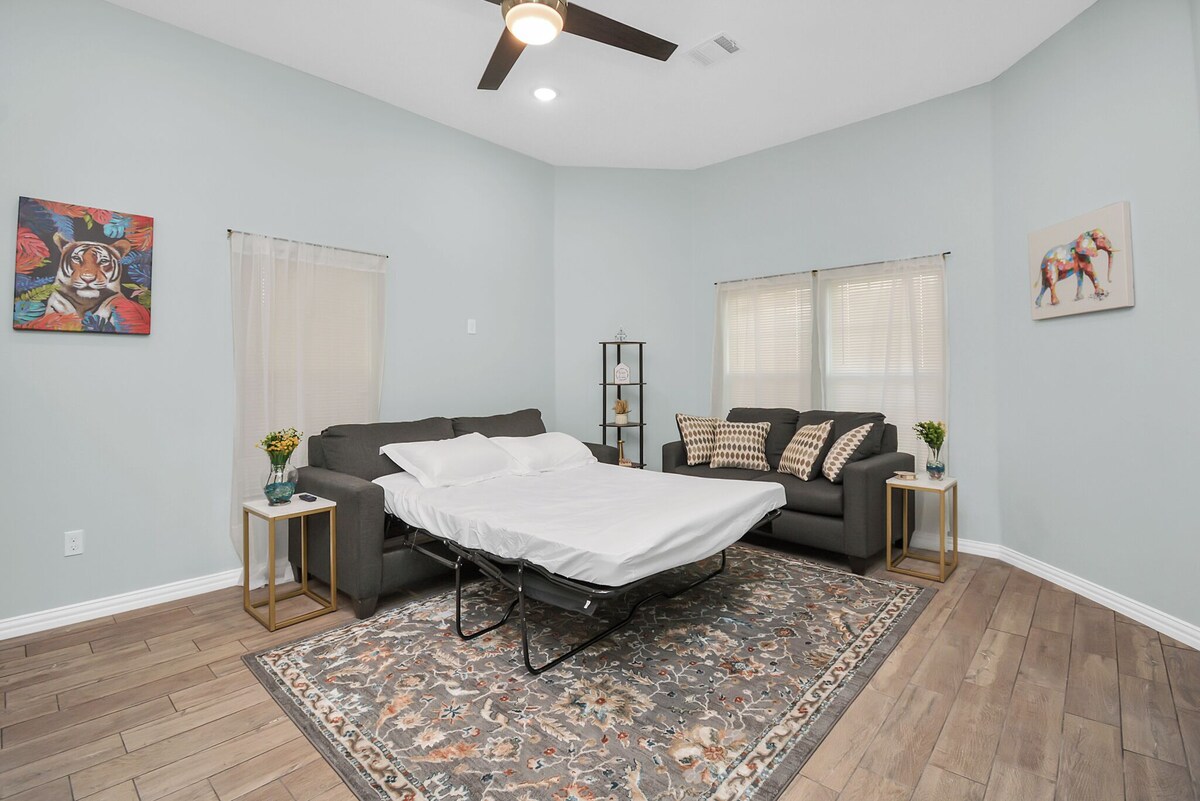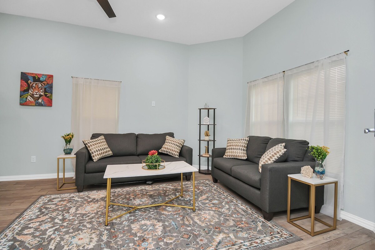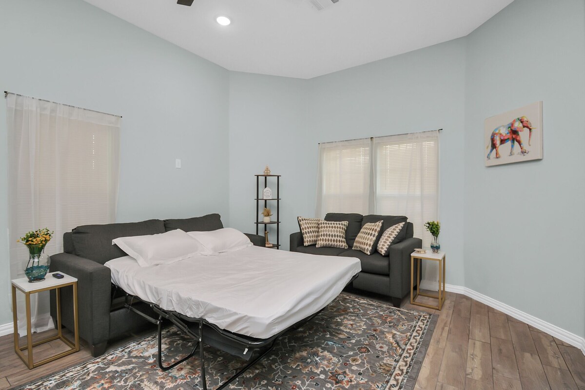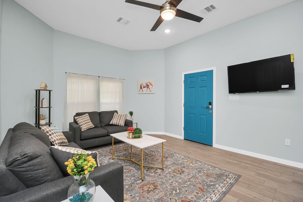 Relax in this spacious 2-bedroom, 2-bath duplex located just minutes from Downtown Houston, the Heights, and local attractions. Ideal for families, business travelers, or long-term guests, the home is designed for both comfort and convenience. Inside, you’ll enjoy a bright living room, fully equipped kitchen, and two private bedrooms each paired with a full bath—making it easy for guests to have their own space. Central heating and air keep the home comfortable year-round, while high-speed WiFi and smart TVs add to the modern touch. Highlights: 2 bedrooms / 2 full baths Central location with easy access to Downtown & I-45 Fully equipped kitchen & spacious living area High-speed WiFi & smart TVs Family- and business-friendly Whether you’re visiting for work, leisure, or an extended stay, this Noble Street duplex offers the perfect blend of privacy, comfort, and convenience. Our prices include all fees. No hidden fees.