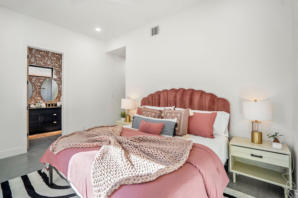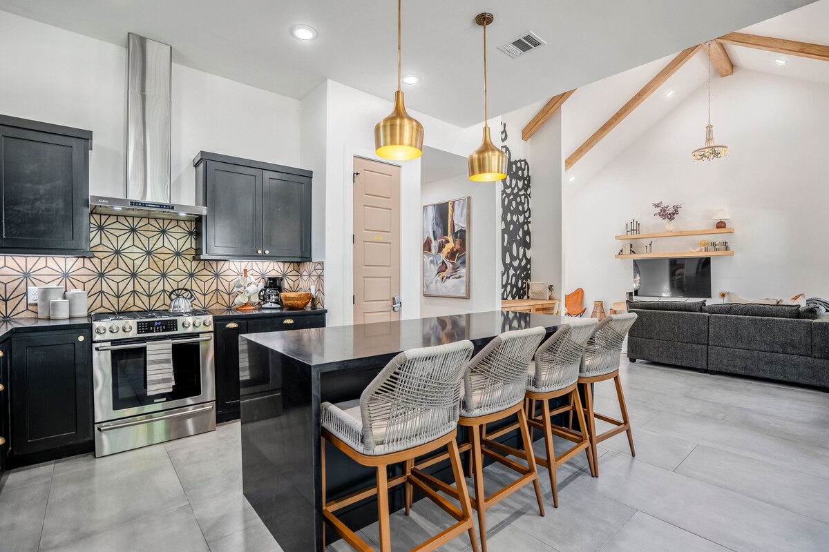 This space is centrally located in East End of Houston. Close to all local attractions including; Medical center 1.3mi, 4min Museum of fine arts 1.9mi, 17min University of Houston 5.2mi, 4 min Texas Southern University 3.2mi, 13min Hobby airport 7.5mi, 18min IAH 21.8mi, 31min Minute maid/Toyota Center/George R Brown 2.1mi, 7min NRG stadium 10.3mi, 28min Houston Zoo/Herman Park 7.0mi, 20min Emancipation Park 3.1miles, 10min ----------------------- **The kitchen and bathroom surfaces as well as doorknobs and handles in this space are professionally BLEACH CLEANED in between every visit. BLEACH is the best disinfectant for sanitizing.** **Extra attention is paid to sanitizing this space to guard against any contagion.** **Please be assured we prioritize and are proactive about protecting our guests' health and safety.** The bohemian chic inspired design combined with the divine cathedral style ceilings are simply jaw-dropping. We welcome you to something beautiful, classy and elegant. From the luscious hues of the paint colors to the immaculate cathedral style ceilings and bold bohemian patterns of the wallpaper this smart home has it all, no detail has been left out. Conveniently located near anywhere you need to be within the city of Houston. This smart home features : - Unique construction and design - Extremely tall ceilings - Super-fast wifi - Dedicated workspace - Big dining table - Fresh 5 gallon water cooler - Fully equipped kitchen with cookware and dishes - A backyard deck And so much more... This space is perfect for extended families, co-working groups, groups of friends or anyone with good taste in search of a prime location. ----------------- ****The kitchen and bathroom surfaces in this space are professionally BLEACH CLEANED in between every visit. BLEACH is the best disinfectant for sanitizing.** **Extra attention is paid to sanitizing this space to guard against any contagion.** **Please be assured we prioritize and are proactive about protecting our guests' health and safety.** The pictures we have in this listing are up to date and accurate. Maps may not have the most updated photos. This is a transitioning area that may appear rough but it's safe and very quiet at night. There is a ring door bell for added security. Early check-in is subject to availability at the sole discretion of the host. Early check-in availability is determined on the day of arrival. The early check-in fee is $50. Early check-in time is 2pm or earlier. Late check-out is 12pm. Late check-out fee is $40. Late check-out is subject to availability at the sole discretion of the host. Late check-out is only applicable to reservations that have paid the $40 late check out fee. Late check-out can only be added to the reservation prior to check-out date. If you request late check-out on check-out day or overstay past normal 10:00 am check-out time then late check-out fee is $80. This $80 will be automatically deducted from your deposit. Check-in begins at 5:00 pm and check-out ends at 10:00 am. Park up to 3 car maximum. Street parking is available right in front of the property. Unit 1 is located on the first floor of the building. Unit 2 is located on the second floor of the building. This is a nonshared listing with multiple listings on this property. No laundry usage between hours of 11 am to 4 pm every day. Always keep your laundry access door closed. You may find clean sheets and towels in the washer and dryer located in the laundry area. If you need to use the dryer, please remove it and set it on the side. If you need to use the washer, please transfer and run the dryer. Thank you. There is an additional yet to be determined commercial usage fee for guests who require filming video or audio on the property. There are always fresh fully laundered towels and sheets placed between every guest visit. Normal wear and tear, these towels and sheets may get stains and tears. This enables us to give our guests the best possible value and at the same time help the environment. Houston is a hot and humid climate, this climate causes a lot of bugs. We are aware that bugs can get into space. We do regular extermination to try to prevent bug problems but it's not a perfect solution. Please note that you may see bugs in the home. No refunds given if bugs are seen. There is a train that runs near this home, you may hear the train at times but the horn does not usually blow. Pets are allowed. 25 pounds or less, the pet fee is $25 per night per pet. 26 pounds and over, the pet fee starts at $50 per night per pet. Please let us know if you want to bring a pet at the time of booking. Once booked, we will require a $250 pet cleaning deposit fee on the day of reservation. Refundable on the check-out day if no damage or excessive animal fur in the space. Also, we will require a picture of the pet. For undisclosed pets brought into the listing, there is an additional $250 fee. Pets are not allowed on any furniture or beds as well please pick up your pet's waste. If there is excessive pet hair in the space we will not refund the $250 pet cleaning deposit fee. *Deposit Collection* (Only in the case of Pets and Underage guests) In the case of any deposit collection, we will need a picture of your government ID and a picture of the credit card used matching your ID. The picture only needs to show the last four digits of your credit card. We will not be able to give access to the space until these steps are completed. Thanks! ------------ The roku remote controls the TV, the TV is run by wifi please login to your account to access apps on TV. Please let the host know once you have checked in and checked out. At check out, please shut off lights and set AC temperature to 75 or heat temperature to 68. Our housekeeping crew will handle all cleanup. Unit 1 is located on the first floor of the building. Unit 2 is located on the second floor of the building. Shared parking. Park up to 3 cars on property parking. Please DO NOT BLOCK t
