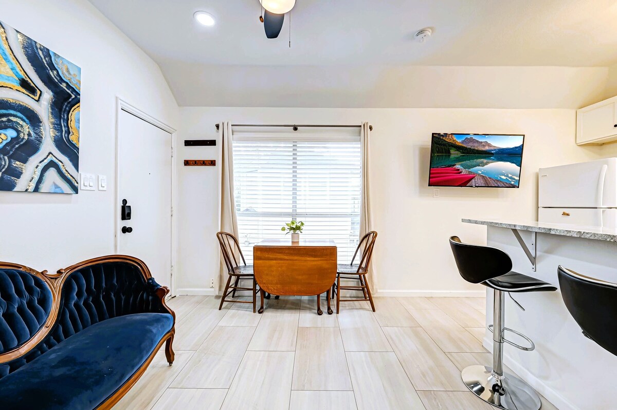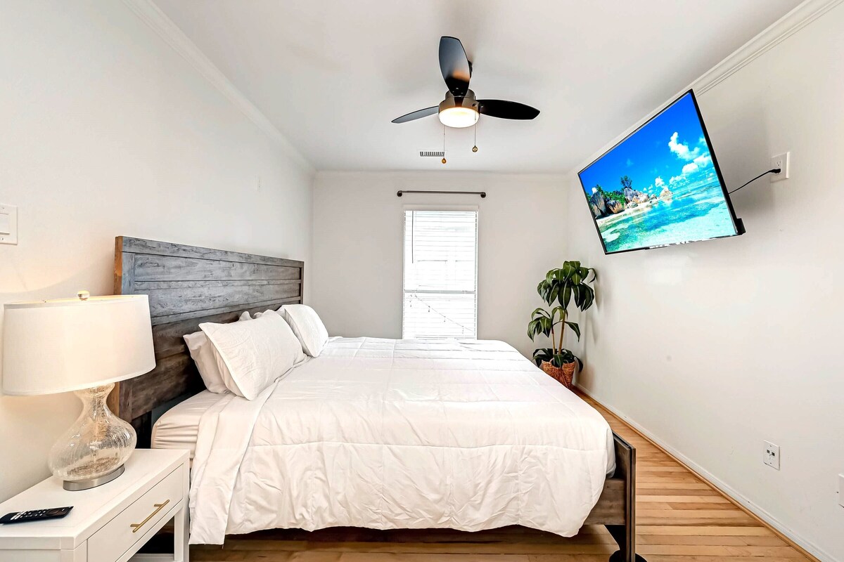 1714 Fairview 1KING/1BA Top Apt Duplex Pets Ok! Welcome to our cozy 450 sq ft 1-bedroom top-floor duplex apartment, located in the heart of Houston’s vibrant Montrose neighborhood. This pet-friendly, upstairs unit is ideal for both short-term and long-term stays, with 30+ day reservations particularly encouraged, blending modern-chic aesthetics with practical amenities for a memorable guest experience. Highlights: Luxurious Sleeping Arrangements: The bedroom features a comfortable king-sized bed, ensuring a restful night's sleep. Our commitment to comfort provides uniform luxury across all our fully furnished apartments. #KingBedsOnly Entertainment Ready: The apartment boasts two 55\ ,