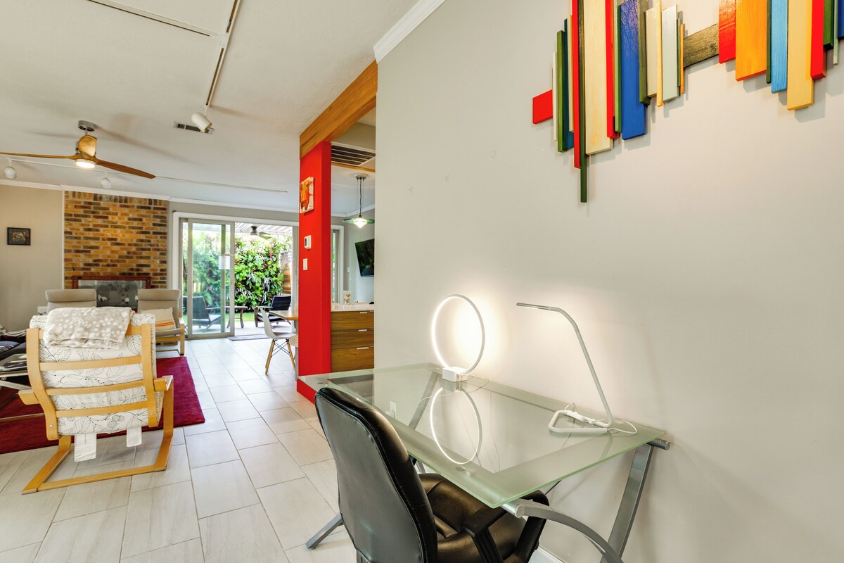 Walk to Houston Medical City | Dedicated Workspace | < 2 Mi to Light Rail Located near the Texas Medical Center in the family-friendly Boulevard Oaks Historic District, this Central Houston retreat is perfect for reconnecting with loved ones at a nearby college, exploring Houston's museums, or using it as a home base for work travel. With a lush backyard, a state-of-the-art kitchen, and a private balcony, this 3-bedroom, 2.5-bath vacation rental home leaves little to be desired. -- THE PROPERTY -- SLEEPING ARRANGEMENTS - Bedroom 1: 1 queen bed - Bedroom 2: 1 queen bed - Bedroom 3: 1 queen bed - Upper Landing: 1 full sleeper sofa - Additional Sleeping: 1 crib, 1 twin air mattress INDOOR LIVING - 2 smart TVs - Ceiling fans - 2 walk-in closets - Rain showerheads in bathrooms - Contemporary decor OUTDOOR LIVING - Patio w/ adjustable pergola - Balcony - Dining area - Custom lighting - Garden & terrace - Vertical green wall KITCHEN - Stove/oven - Microwave - Refrigerator - Blender - Drip/single-serve combo coffee maker - Toaster - Cooking basics, spices - Dishware/flatware - Dishwasher - Garbage disposal - Ice maker - High chair GENERAL - Free WiFi (300 Mbps) - Central heating & air conditioning - Washer & dryer, laundry detergent - Air filter system, tankless hot water heaters - Linens/towels - Complimentary toiletries - 2 hair dryers - Beach chairs - Iron/board - Trash bags/paper towels ACCESSIBILITY - 2-story home - 1 step for entry - Bedrooms on 2nd floor FAQ - Pet fee (paid pre-trip) - 2 exterior security cameras (facing out) - Fireplace (decorative only) - Homeowner on-site (attached studio, separate entrance) - Quiet hours (10:00 PM-7:00 AM) PARKING - Driveway (1 vehicle) - Free street parking (first-come, first-served -- THE LOCATION -- - Calm, safe, and convenient for family and business groups - 1 mile to Rice University - 1 mile to Levy Park - 2 miles to Commons at Hermann Park (Space Adventure) - 3 miles to Texas Medical Center - 6 miles to the University of Houston - 2 miles to Hermann Park Golf Course, Children's Museum Houston & Houston Zoo - 4 miles to Discovery Green - Within 5 miles of sports stadiums - 28 miles to Space Center Houston - 12 miles to William P. Hobby Airport - 25 miles to George Bush Intercontinental Airport -- REST EASY WITH US -- Evolve makes it easy to find and book properties you'll never want to leave. You can relax knowing that our properties will always be ready for you and that we'll answer the phone 24/7. Even better, if anything is off about your stay, we'll make it right. You can count on our homes and our people to make you feel welcome — because we know what vacation means to you. -- POLICIES -- - No smoking - Pet friendly w/ $75 fee (+ fees & taxes, dogs only, 3 max) - No events, parties, or large gatherings - Additional fees and taxes may apply - Photo ID may be required upon check-in - The fireplace is not available for guest use - Please observe quiet hours from 10:00 PM to 7:00 AM ADDITIONAL INFORMATION - While this 2-story home requires 1 step for entry, all of the bedrooms are located on the 2nd floor and require stairs - The property owner lives on-site in an attached private studio apartment with a separate private entrance. The owner may be on the property during your stay. The door between the owner's unit and the guest's unit is a hotel-grade door that is locked on the guest's side - Your safety matters. This property features 2 exterior security cameras: 1 camera is located on the front outdoor entry facing out, and 1 camera is on the front walkway facing the gate. The cameras are outward facing and do not look into interior spaces. The cameras record video and sound when activated by motion Our prices include all fees. No hidden fees.