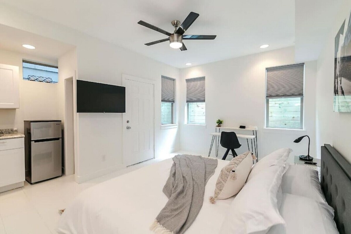 Stay in style at this spacious 5-bedroom, 5-bath home in the heart of Houston’s vibrant East Downtown. Designed for groups, the home features a chef’s kitchen, a luxurious master suite with soaking tub, and a private king studio that’s pet-friendly. Just minutes from the Convention Center, Minute Maid Park, PNC Stadium, and EaDo’s best restaurants, breweries, and nightlife. Perfect for families, friends, or business travelers seeking comfort and convenience. This contemporary 3-story home was made for groups who want space, privacy, and easy access to all things Houston. With 5 bedrooms and 5 bathrooms, there’s room for everyone to relax in comfort. The second-floor master suite boasts an oversized tub, while the first-floor king studio offers added privacy and is pet-friendly. The open-concept kitchen is fully equipped for shared meals, and the spacious living areas are perfect for gathering together. Enjoy modern amenities including high-speed Wi-Fi, smart TVs, in-home laundry, and a balcony for fresh air and city views. Located in the lively EaDo neighborhood, you’ll be steps away from Houston’s best attractions: George R. Brown Convention Center, Minute Maid Park, PNC Stadium, and a buzzing food and nightlife scene. Whether you’re here for work, a getaway, or a big event, this home delivers the perfect blend of style, comfort, and location. • Check-in is anytime after 4:00 PM • No parties or events • No smoking Our prices include all fees. No hidden fees.
