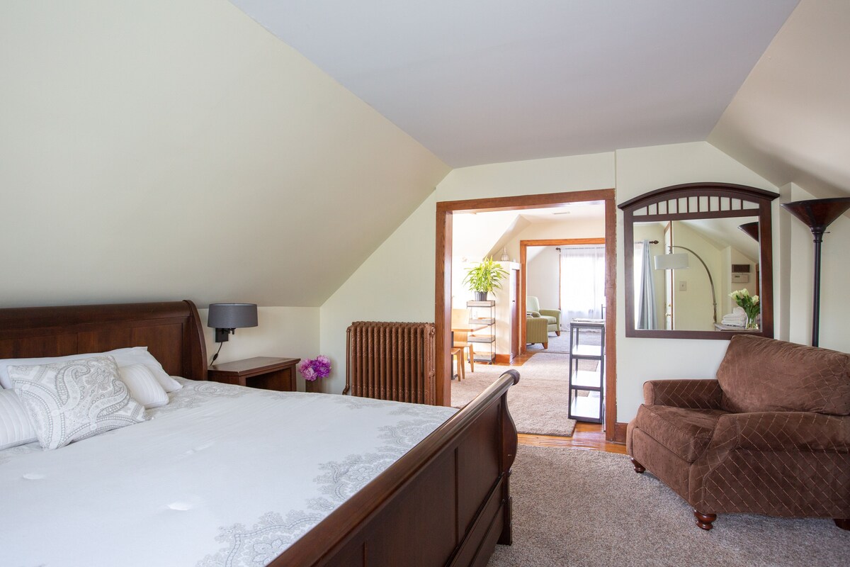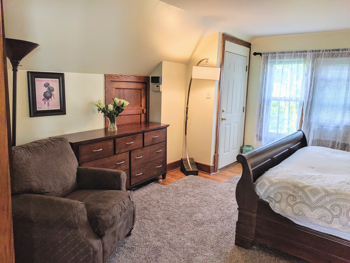 This large, one-bedroom apartment is located in the trendy Uptown area. Equipped with high speed internet we have google fiber for your work at home needs. It has a full kitchen, and separate dining and living rooms. A single family home that was converted into a triplex, the tasteful furnishings are enhanced by beautiful woodwork that is typical of many historic Minneapolis homes. Imagine waking fully rested after sleeping in a luxurious King-sized sleigh bed dressed with high thread-count linens. After enjoying your morning coffee in dining room flooded with natural light, you can take a short walk to find numerous restaurants, trendy coffee shops and entertaining nightlife options. Prefer stay in for the night? Snuggle up in the separate family room, which is equipped with a large flat screen TV and plenty of streaming options. And for parents of four-legged fur babies; we welcome well-mannered pets. In fact, your furry friends can enjoy their own space in a fenced backyard. This urban oasis is a gem – check the calendar now for available dates. Need more space for a large group? Enter the key words ‘Luxury home in Uptown’ to see our other multi-level 5-bedroom home, which is next door. It’s perfect for a girls’ or boys’ weekend away, or a large family gathering. Our prices include all fees. No hidden fees.