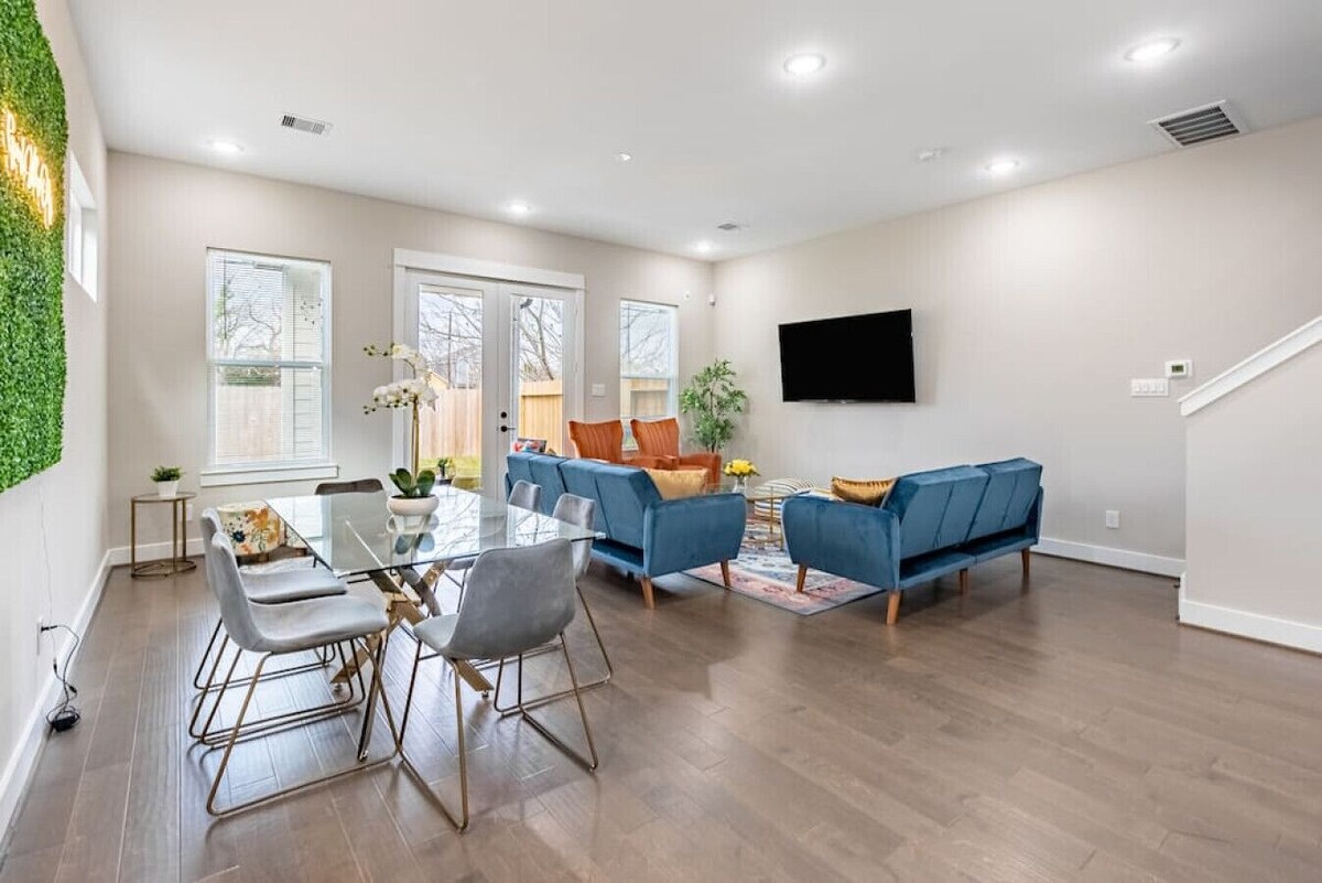 Be the first to stay at this brand new construction in the upcoming East Downtown Houston. Home with an exquisite interior design done by a renowned interior designer. Enjoy every bit of this classy, comfy and modern home. Minutes away from all of Houston`s finest dining Medical Center - 3.1 miles Minute Maid Park - 2.8 miles Montrose - 2.8 miles NRG Stadium - 6.1 miles Each Bedroom has its own attached bathroom. Attached 2 car garage Our prices include all fees. No hidden fees.