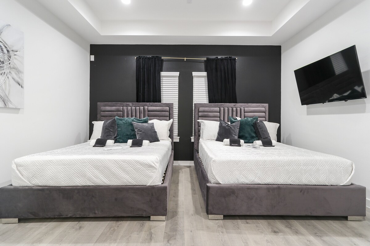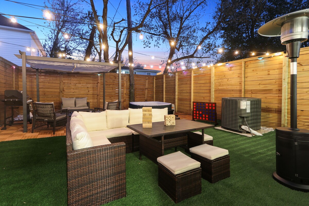 NEW Modern Family Retreat! 10 MIN TO DOWNTOWN Lifestyle! >> Big Backyard >> Hot Tub >> Movie Room >> Fresh Towels and Linen >> High Speed Wi-Fi >> Smart TVs >> BBQ Grill >> Games ( Connect 4, Jenga, Foosball, etc) Our prices include all fees. No hidden fees.