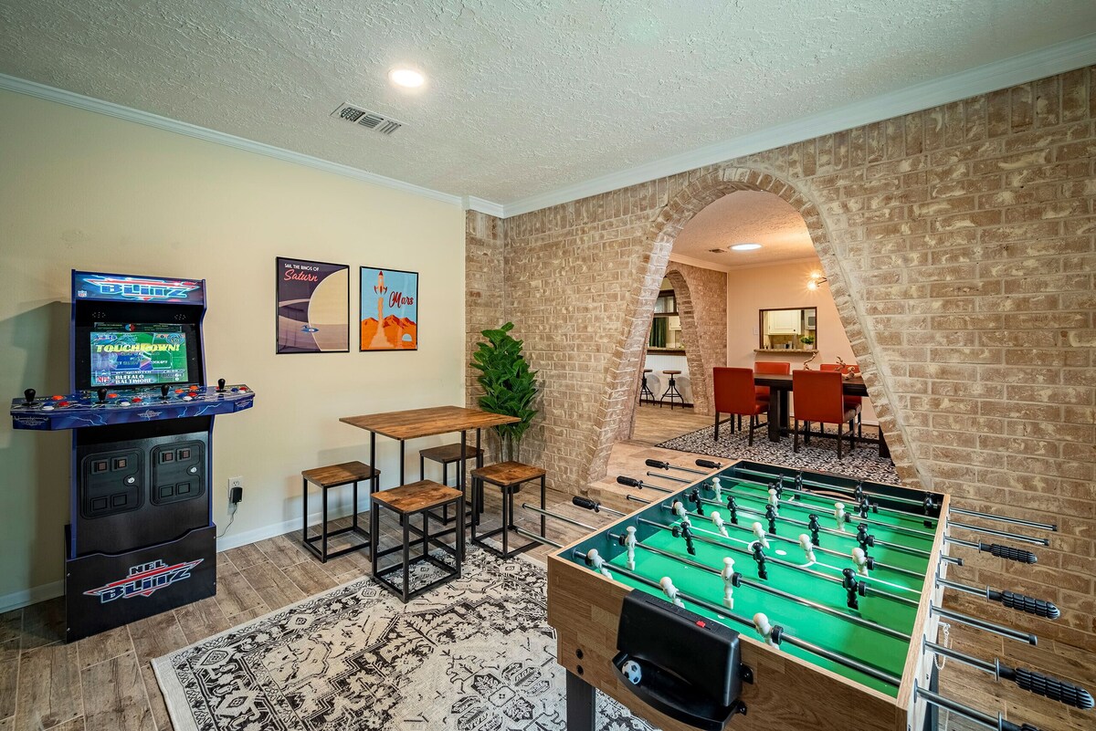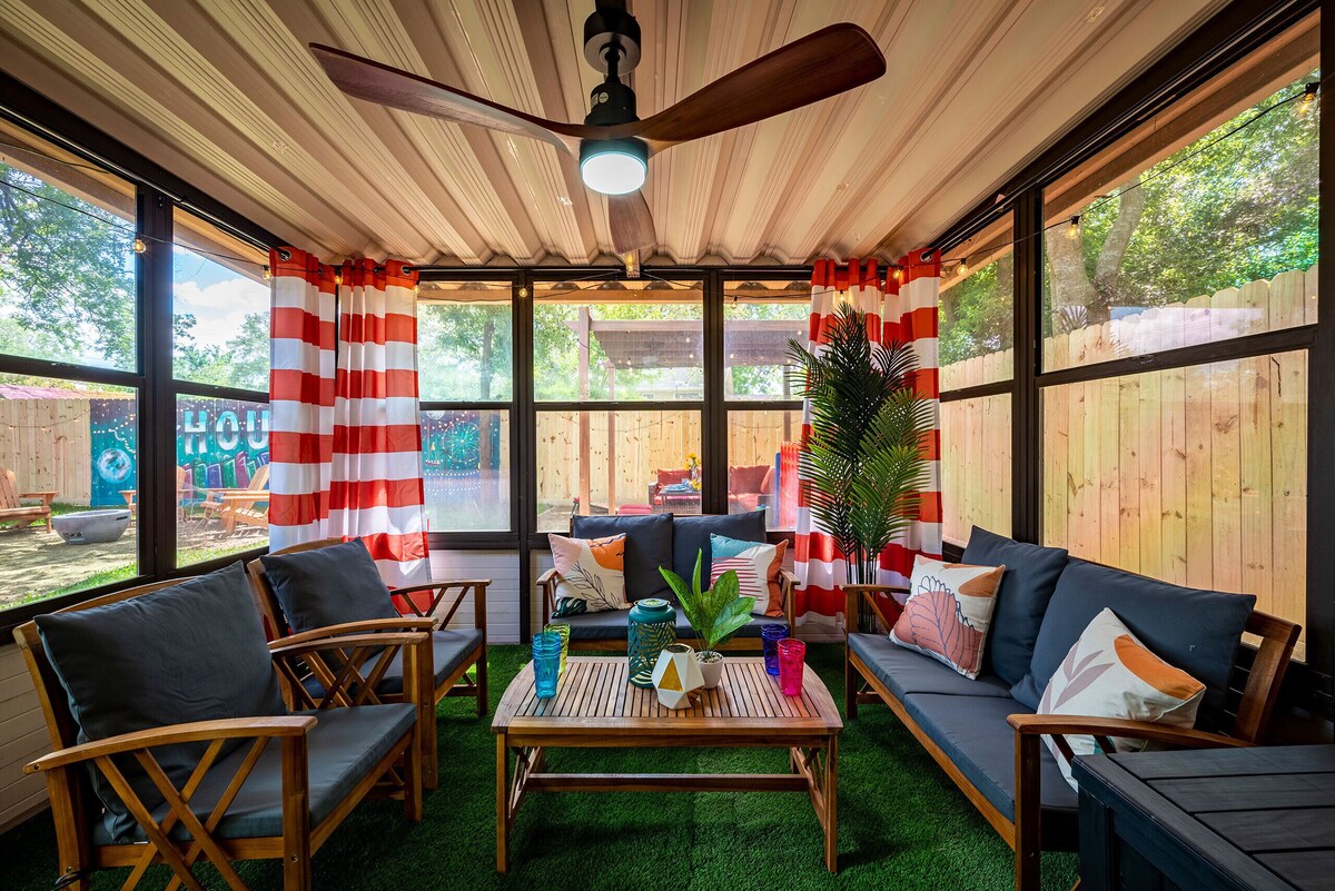 ★☆ ABOUT THIS SPACE ☆★ Nestled in the desirable Saint Cloud neighborhood, our home offers a peaceful retreat while staying close to all the action. Inside, you’ll find a comfortable, well-appointed space with everything you need to feel right at home. Whether you’re cooking in the fully equipped kitchen, relaxing in the cozy living room, or resting in one of our comfy bedrooms, you’re all set for a perfect stay. Kick off your shoes and enjoy all that Houston has to offer from the comfort of this welcoming abode! Experience the perfect staycation with us—read on to learn more! ★☆ NEARBY ATTRACTIONS & LANDMARKS ☆★ 3.3 mi — Texas Avenue Park 3.5 mi — Baybrook Mall 3.8 mi — Houston Healthcare Clear Lake 4.0 mi — Space Center Houston 4.8 mi — Clear Lake Park 9.5 mi — Kemah Boardwalk 10.3 mi — Bay Forest Golf Course 10.7 mi — El Jardi Beach ★☆ KEY FEATURES ☆★ 3 bedrooms, 2 bathrooms Open-concept kitchen stocked with essentials Spacious living area perfect for families and friends Outdoor space with fire pit, dining furniture, enclosed porch, and fully furnished sunroom Adjacent dining room Washer and dryer ★☆ BEDROOM ARRANGEMENT ☆★ BR1: 1 King Bed BR2: 2 Full Beds + Trundle BR3: 1 Queen Bed ★☆ LIVING ROOM ☆★ Sink into plush seating while enjoying your favorite shows on the 65\ ,