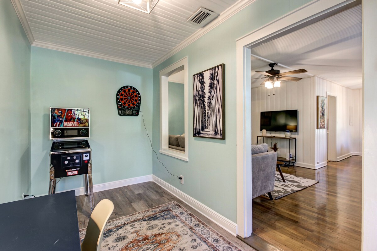 Cozy Murray Hill bungalow with 2 bedrooms and 1 bath is spacious and comfortable for family or friends. Separate living and dining rooms make it easier to socialize, and the yard gives you a great place to enjoy the sun, wind, and pets, or just relax while enjoying your day! It's located in a sought-after area near public transportation, shops, dining, and entertainment. We are available when needed. Murray Hill in Jacksonville has become one of the coolest neighborhoods because to local art, delectable food, artisan beer, and enthusiastic craftsmen. This old-yet-new neighborhood, sandwiched between trendy Riverside and storied Avondale, has emerged as a hub for young entrepreneurs to launch cutting-edge eateries, boutiques, bottle shops, and companies. Guests will have full access to the house. Murray Hill in Jacksonville has become one of the coolest neighborhoods because to local art, delectable food, artisan beer, and enthusiastic craftsmen. Our bungalow Sleeps 6. Full kitchen (fridge w/freezer, microwave, dishes, silverware, and coffee maker), towels, sheets, etc. Wifi is included with a flat-screen TV. Some of the amenities we have include: **Smart TVs available ** Arcade games **W/D ** Fridge ** Microwave ** Free on-premise parking **Coffee pot with coffee, cream, and sugar ** Eating Utensils **Laptop-friendly workspace and more! Car or Uber. Health & Safety: We prioritize the health, safety, and comfort of our guests. Each stay is followed by a thorough cleaning to maintain a welcoming environment. Late Check-Outs & Early Arrivals 1-2 hours: $100 2-3 hours: $200 Note: Early arrivals and late check-outs are not guaranteed due to our tight cleaning schedule. Please request approval in advance. Refund Policy A 3.9% processing fee on refunds is non-refundable. Refunds will be the amount paid minus this fee, per Stripe's policy. This applies to direct booking and bookings made through select booking channels. General Guidelines ●Pets: A pet fee of $75 applies per reservation for up to 2 pets. Bringing a pet without prior notification incurs an additional $100 fee, and we may end your stay early. No cats allowed. If your pet causes any damages, additional charges will incur to cover repair or cleaning costs. ●Age Requirement: Primary guest must be 21+, with an adult over 21 present during the stay. Food & Drink: No food or drink in bedrooms (closed water bottles allowed); extra cleaning fees for stains. ●No Smoking: Smoking of any kind is prohibited; $200 fine for violations. Additional charges will incur to cover repair or cleaning costs. ●Trash: Dispose of all trash in outside bins before departure. ●Damages: Report any damages within 24 hours of occurrence or immediately upon arrival. Failure to report damages could result in liability for repair or replacement costs. ●Dishes: Wash all dishes and run the dishwasher (if applicable) before leaving. ●Windows: Keep windows closed for security. ●Laundry: Avoid overloading machines; do not wash sandy items, and clean the dryer lint trap. ●Storage Closet: Keep this area closed and locked. ●Consumables: Leftover items are at your discretion; freshness is not guaranteed. ●Furniture: Do not rearrange. ●Parties & Events: Unauthorized parties are not allowed; violations will result in additional charges and immediate eviction. ●Only registered guests are permitted to stay at the property. If you would like to add extra guests beyond the number initially registered, please request approval before finalizing your booking. Any additional guests that exceed the maximum allowed at the property will incur an additional charge of $100 per person. This requires approval from us prior to booking. ●Illegal Activities: Will result in immediate eviction. ●Quiet Hours: 10pm to 7am. Please be respectful of neighbors. Thank you for your cooperation, and enjoy your stay! Our prices include all fees. No hidden fees.