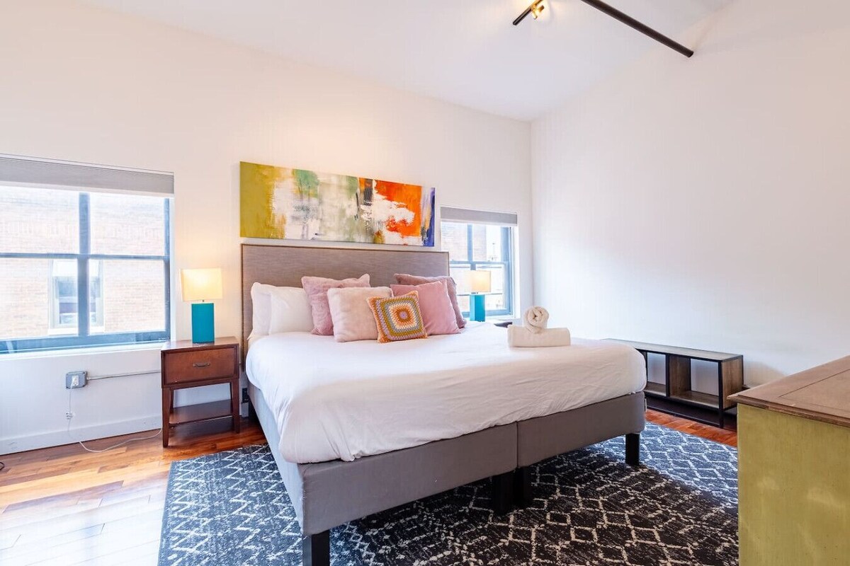 Welcome to The Gallery Suite Residence! Our pet-friendly space is designed for longer-term stays, but short visits are always welcome. This 3-bedroom, 2-bathroom residence is professionally managed; it blends historic charm with modern comfort. This is one of four professionally managed units within the same building—multi-unit bookings are available. Located just steps from Independence Hall, the Liberty Bell, and Philadelphia’s most iconic cultural institutions, you’ll be immersed in the city’s rich history while enjoying elevated amenities and seamless service. Whether you`re here for work, relocation, or leisure, this space is curated for clarity, comfort, and creative inspiration. This is not just a stay—it’s a curated experience. The Gallery Suite Residence offers clarity, comfort, and creative inspiration in one of Philadelphia’s most iconic neighborhoods. 🔑 DETAILS ✓ Check-in process:Keyless entry with unique code ✓ 3 Bedrooms in a private full-floor unit ✓ 2 Full bathrooms ✓ Sleeps 5 in 3 beds (1 King, 1 Queen, and 1 Full Bed) ✓ Internet: High-speed Xfinity 300mbps ✓ Parking: Secured underground parking, additional parking available ✓ Laundry: washer/dryer in the residence ✓ Kitchen: Fully stocked with premium cookware, glassware, and utensils ✓ Coffee: Drip machine, and tea selection ✓ Tech: Smart speaker, 55` & 40` smart TVs with streaming access ✓ Toiletries: Shampoo, Conditioner and Shower Gel ✓ Heating & Cooling: Central air and heat ✓ Pet Policy: One dog permitted with a small pet fee ✗ No smoking indoors 🏡 THE SPACE ➤ 1,200 sq ft 3 bed / 2 bath full-floor unit ➤ The entire unit is step-free and on one level ➤ No shared walls between units ➤Secure elevator access directly into unit ➤Professionally cleaned and maintained ➤Private entrance with smart lock ➤ Sleeps 5 comfortably: 1 King, 1 Queen bed, 1 Full bed with hotel-grade linens ➤ Two bathrooms, 1 en-suite with walk-in shower, and 1 with Bath & shower ➤ Fully stocked kitchen with oven, gas stove, microwave, blender, toaster, wine glasses, and more ➤ Smart TVs (55` in living room, 40` in primary bedroom) with streaming access ➤ Washer/dryer, iron, ironing board ➤ One dog welcome with small fee ➤ Entire unit available ABOUT THE AREA Philadelphia’s cultural epicenter—where cobblestone streets meet cutting-edge galleries, boutique shops, and award-winning restaurants. Walk to the city’s most iconic landmarks, or explore the vibrant nightlife and creative energy that define this historic neighborhood. 🍽 Local Favorites: • Zahav – James Beard-winning Israeli cuisine • Fork – Seasonal American fare • Amada—Spanish tapas by Iron Chef Jose Garces • Royal Boucherie—French-inspired gastropub with rooftop seating • Han Dynasty – Fiery Sichuan dishes • Khyber Pass Pub – Southern comfort food with craft beer ☕ Coffee & Drinks: • Menagerie Coffee – Single-origin brews in a cozy setting • Old City Coffee – Beloved local roaster • Art in the Age – Apothecary-style cocktail bar • Sassafras – Vintage cocktail lounge • Independence Beer Garden – Outdoor beer garden with games and bites Our prices include all fees. No hidden fees.