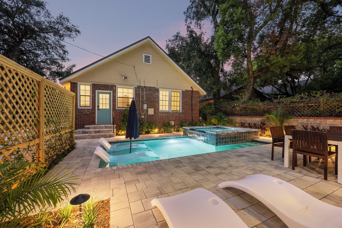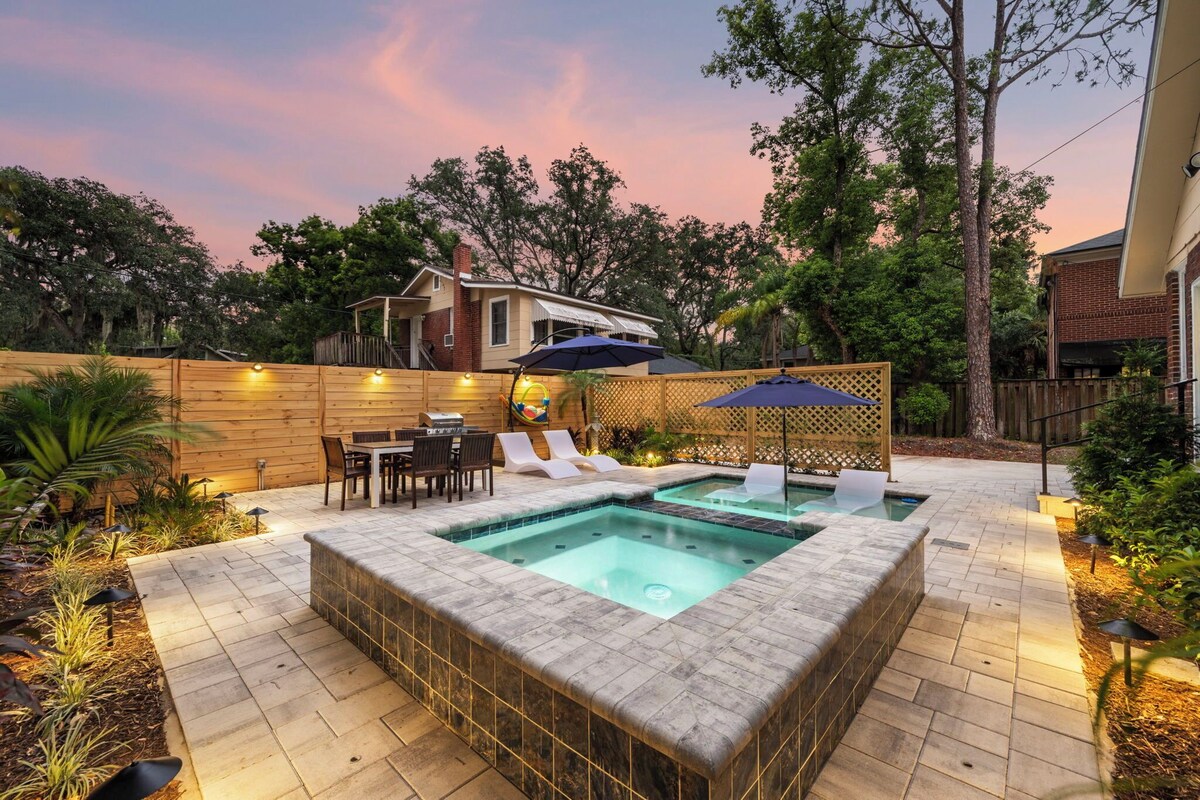 Welcome to your Jacksonville escape! This stylish 3-bedroom, 2-bath home is located in the heart of San Marco—just 10 minutes from Jaguars Stadium and close to vibrant cafes, parks, and boutiques. Perfect for family trips, game weekends, or long-term stays. Step inside: • Vaulted ceilings, cozy fireplace, and sunlit open layout • Fully equipped chef’s kitchen with granite counters & breakfast nook • Plush linens in tranquil bedrooms for a restful night’s sleep Step outside: • Heated swimming pool ($100/night, 48h notice) • Free hot tub heating • Grill and patio for al fresco dining • Fenced backyard for privacy and relaxation Perks guests love: • Fast Wi-Fi & smart TVs • 3 mins from Publix • Quiet, walkable neighborhood • Seamless self check-in Whether you’re in town for a Jaguars game, visiting friends, or just soaking up the Florida sun, this San Marco gem is your home away from home. Love this space? Add us to your wish list so you can easily find us for your next trip! Our prices include all fees. No hidden fees.