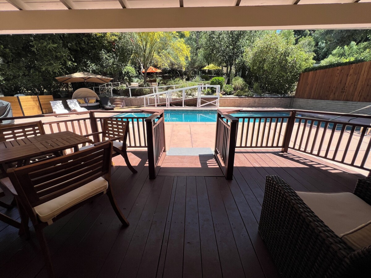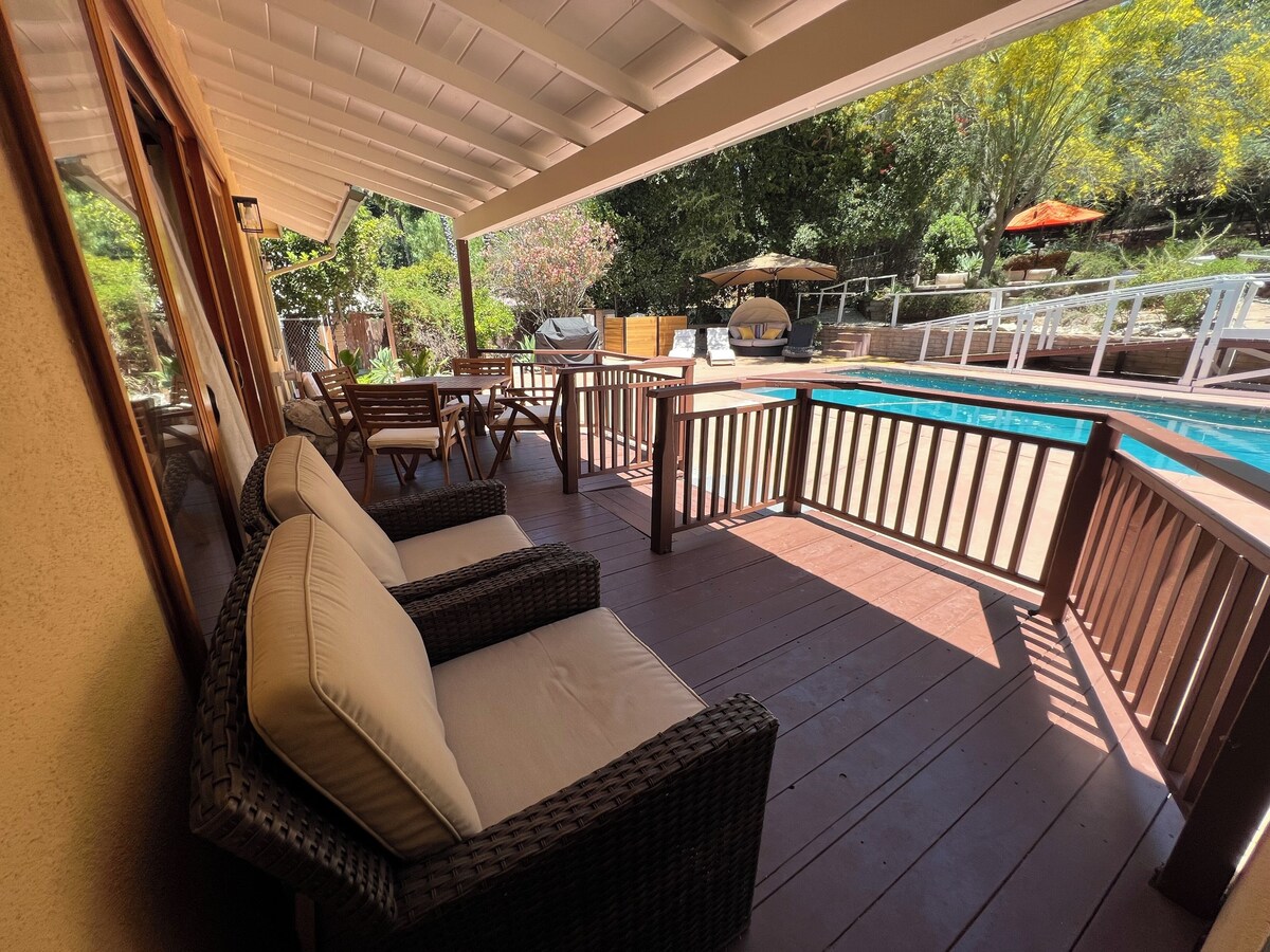 (Please note that while the interior and the exterior furnishing of the house has gone through a complete decorative redesign, with new furnitures and beds being outfitted, the calendar is wide open for new future reservations, and our most up to date and professionally taken photos of this brand new VRBO listing, will be uploaded as soon as they become available) DUE TO THE COVID-19 PANDEMIC WE USE THE MOST STRINGENT DEEP CLEANING AND SANITIZING SERVICES AFTER EVERY STAY TO ENSURE EVERYONE STAYS SAFE You will have an ENTIRE quarter of an acre modern and rustic-contemporary cabin style villa, with a pool and a garden to yourself, which includes a brand new and powerful air conditioning system for summer & equally effective heater for winter, as well as Smart TVs in every single room. Super Fast WiFi (100+ Mbps) Great Swimming Pool BBQ & outdoor lounge area Smart 4K TVs in every room Comfortable seating for 10 High end beds & bedding Sleeps up to 10 comfortably Come enjoy LA living & sunshine at its finest! * PLEASE READ THE HOUSE RULES AND AGREE WITH THE TERMS BEFORE CONFIRMING YOUR RESERVATION - 4 BR & 2 BTH Centrally located brand new family friendly home w/ large pool in a safe neighborhood. - PARKING for up to 5 cars in the driveway and convenient and FREE street parking out front if needed. - GREAT RESTAURANTS within less than 5-10 minutes (Casaléna, Joey Restaurant, Mortons Steakhouse, Il Fornaio, XOC Tequila Grill, Ruth’s Chris Steak House, P.F. Chang’s, BJ’s, etc.) - CENTRAL LOCATION w/ a Whole Foods Market and a brand new AMAZON FRESH STORE within 2 MILES and only 30 minutes away to UNIVERSAL STUDIOS, 30 minutes to HOLLYWOOD, 15 minutes to MALIBU, less than 5 minutes to CALABASAS, and 20 minutes to SANTA MONICA BEACH - EXCELLENT FREE HIGH SPEED WIFI (100+ Mbps) - 4K HD Smart TVs in the living room and in all the bedrooms, streaming NETFLIX, YouTube, and more. Xbox One S gaming console for our guests to enjoy playing video games, as well as a Foosball Table. - NO PARTIES / EVENTS or ROWDY GROUPS - I want people to enjoy themselves, but disrespectful guests will be forced to leave and lose their deposits. The property is equipped with NOISE MONITORING EQUIPMENT and OUTDOOR SURVEILLANCE CAMERAS monitoring the entrance. - FULLY STOCKED KITCHEN with all the amenities for cooking and a KEURIG machine, as well as a drip coffee maker for making your morning coffee! - LARGE BBQ GRILL gas operated Weber grill for you to enjoy the meal you cook on the BBQ after spending a day in the sun by the pool! - FULLY EQUIPPED HOUSE with everything you need for a great and pleasant stay in the sunny LOS ANGELES, CALIFORNIA Come and enjoy the best of LA in a beautiful and stylish single story home located in a family friendly neighborhood. Centrally located near all of the tourist sites in LA, like UNIVERSAL STUDIOS, HOLLYWOOD WALK OF FAME, and SANTA MONICA BEACH, and 5 minutes away from CALABASAS where many celebrities live. Then relax in comfort, catch some sun and enjoy the POOL and BBQ in the cozy and quiet backyard. This home boasts comfortable seating inside and out, flexible sleeping arrangements, VERY fast & free WiFi. There is the brand new Amazon Fresh grocery store which you HAVE to check out less than 5 min away! Also, with perfect freeway access to the 101 Freeway which will take you to visit everything in and around Los Angeles. The house is spread out on a single floor with an amazing and modern brand new kitchen which makes cooking a joy with a large dining table for 6 people with additional kitchen counter seating for 2 people, which is open to the adjacent living room. A bright Large Suite with a personal 4K Smart TV with a KING SIZED bed. For the other 3 guest bedrooms, two have Queen Sized beds and one of the bedrooms has two TWIN Sized beds. Flexible additional sleeping arrangements include the large Crate and Barrel sleeper SOFA BED in the living room which is convertible to a Queen bed. There is also a twin sized rollaway mattress bed which can be used if needed. The kitchen is fully stacked and equipped with modern amenities to make your stay great for the entire group, including a full coffee corner which includes a Keurig coffee machine to make sure that everyone's happy. All cookware, dishes, and basic spices are there in the home. Outdoor in the backyard you also have Weber BBQ gas grill, equipped with all the utensils needed for you to enjoy. A brand new and very strong Central HVAC controlled by a Nest Smart Thermostat to ensure that you are comfortable day and night. You have driveway parking for up to 5 cars and then additional parking on the street right outside the house. The living room boasts a 65” Samsung 4K Smart TV for streaming your favorite shows on your favorite streaming services, local channels, etc. and comfortable seating on multiple couches and chairs. Super fast and reliable free WiFi (100+ Mbps) for all of our guests which covers the entire property with our mesh network system coverage. The home is stocked with cards & board games for the group to enjoy themselves inside or outside while enjoying the weather! The clean and sparkling Swimming Pool is the central focal point of course with seating and chairs for sunbathing all around. Fully gated backyard lets the kids run around safely! Small pets or animals are allowed. We respect all of our guests including those who have allergies, however, small pets less than 20 pounds are allowed, but please notify us beforehand of the size and breed so that the property can be thoroughly cleaned up for our future guests with pet allergies. The bedrooms ALL have top of the line Beautyrest and Sealy mattresses, with high quality bedding, and clean high quality linens and sheets to ensure you get a good night's rest. In addition, there are 4K Smart TVs in every bedroom, and I know how important it is to charge your devices conveniently so outlet plugs are located at the side of each bed including bedside la