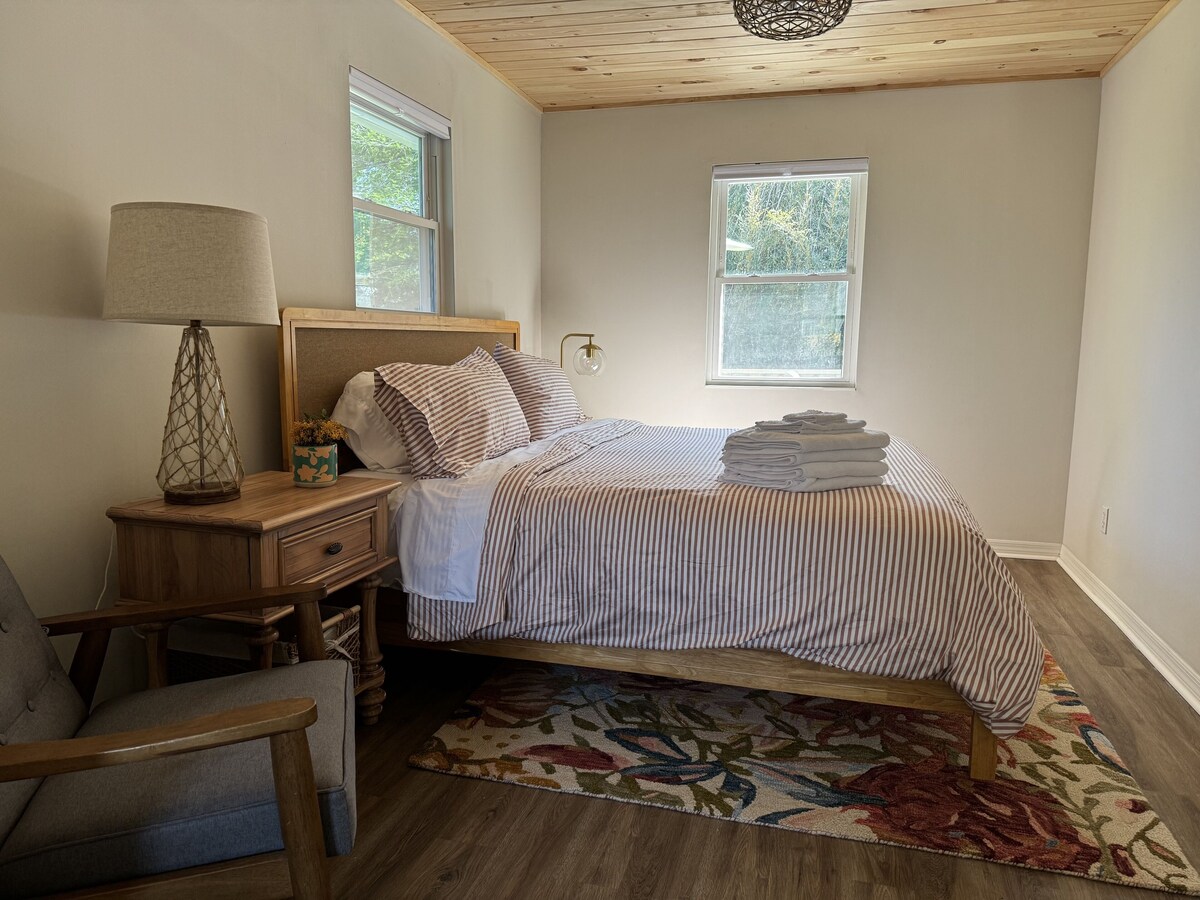 Welcome to the Mayport Cottage! Make some memories at this unique and family-friendly place! Located in the heart of the Mayport fishing village surrounded by the St Johns River, spectacular fresh seafood markets and restaurants and a short walking distance to the St. John River Ferry. This cottage has recently been updated providing a clean and comfortable stay for you and your friends and family. Conveniently located near the Mayport Navy Base, Hanna Park and Atlantic Beach access. The cottage is a 3 bedroom home (1 king suite, 1 trundle bedroom with 2 twin matresses that can be converted into a king bed, and another King bed in the 3rd bedroom). The master bedroom can either open to the trundle room or can be closed off making a great option for a kid room. There is one bathroom centrally located. The living room and kitchen are open and spacious making it a great place to gather around the 75\ ,