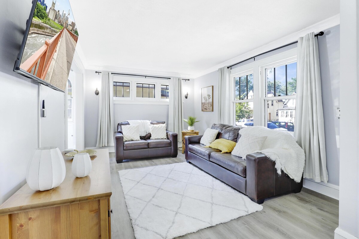 Welcome to the In Town Home in Minneapolis! We are located close to the University of Minnesota St. Paul and Minneapolis campuses and downtown Minneapolis. This almost-100-year-old home was recently renovated and is perfect for families or working professionals coming to MPLS as it comfortably sleeps 10. This home is in a peaceful, quiet neighborhood between Como and Hennepin Ave. The home features a deck with a grill, a well-stocked kitchen, four bedrooms with TVs, a comfortable living room and dining area, and many more amenities. Are you looking for a house in a great location and close to almost everything Minneapolis has to offer? Look no further. Our house is in a central location in Minneapolis, close to many breweries, US Bank Stadium, both U of M campus, and Minneapolis downtown. → Only 5 minutes to the University of Minnesota St. Paul campus → Only 5 minutes to the University of Minnesota Minneapolis campus → Only 10 minutes to downtown Minneapolis → MSP airport is just 16 minutes away → Mall of America is 18 minutes away → Within walking distance from Insight brewery → Within walking distance to bus stops 61 and 3 to Minneapolis and St. Paul Great place for those who love biking to the city- great biking trails/path to downtown Minneapolis ⇒ HOME FEATURES ⇐ ■ Guest closet in the entryway for clothes, shoes and winter boots ■ A beautiful and spacious deck with a grill ■ Updated and fully stocked kitchen that includes stainless steel appliances, and a coffee bar ■ Remodeled homes with a relaxing vibe and new flooring throughout the house ■ Laundry room with washer and dryer ■ FREE fast WiFi (500 Mbps) ■ 4 bedrooms & 2 full bathrooms (Sleeps 10) ■ Private office area with a monitor for working on the go ■ Crib (pack n’ play) and kid's dinnerware provided ⇒ IMPORTANT RULES: PLEASE READ ⇐ ■ Parties are not allowed and anyone who breaks this rule WILL be immediately evicted without a refund and subject to an additional $500 eviction fee. This includes playing loud or vulgar music on the deck, any drug use on the property, including marijuana with a medical ID (do it somewhere else). We care about our neighbors and our home, and this behavior is not allowed at this property. ■ All guests must be over the age of 25 unless part of a family unit. Verification may be required. ■ No indoor smoking, including the garage ■ Pets allowed (fee and approval are required) ■ Booking may require a selfie taken with a valid ID due to our contactless check-in process ■ Must observe QUIET HOURS 10 PM-7 AM Deviation from these rules can result in an eviction from the premise with no refund, and subject to an additional $500 eviction fee. ⇒ SLEEPING ARRANGEMENTS: ⇐ Bedroom 1: King Bed with a smart TV Bedroom 2: Queen Bed with a smart TV Bedroom 3 (basement): Queen Bed with a smart TV Bedroom 4 (basement): Queen Bed with a smart TV Living room: Queen-sized sleeper sofa in the living room Office space with a monitor and office chair We do provide a pull-out sofa queen-sized sleeper sofa in the living room. If you’re bringing more than 8 guests, please let me know. Additional charges will apply for two additional guests. ⇒ INFANT/BABY EQUIPMENT: ⇐ We provide a crib (bassinet) and kid's dinnerware. ⇒ BEDDING/TOWELS: ⇐ Linens, pillows, bath towels are provided for each person. ⇒ KITCHEN: ⇐ We have a fully stocked kitchen that includes stainless steel appliances, and a coffee bar. We supply dinnerware plus kid-friendly dinnerware, silverware, drinking glasses, coffee mugs, pots and pans, cooking utensils, mixing bowls, baking dishes, pizza pan, cookie sheet, toaster, blender, crock pot, air fryer, can opener, wine opener, measuring cups/spoons, flex brew coffee maker (including complimentary coffee, filters, and creamer). ⇒ GRILLING ⇐ A gas grill and propane tank are provided. Please feel free to use the remaining fuel in the propane tank. The tank can be exchanged (as needed) by guests for about $20 at any local hardware store. Host will not exchange the propane tank if empty. Our prices include all fees. No hidden fees.