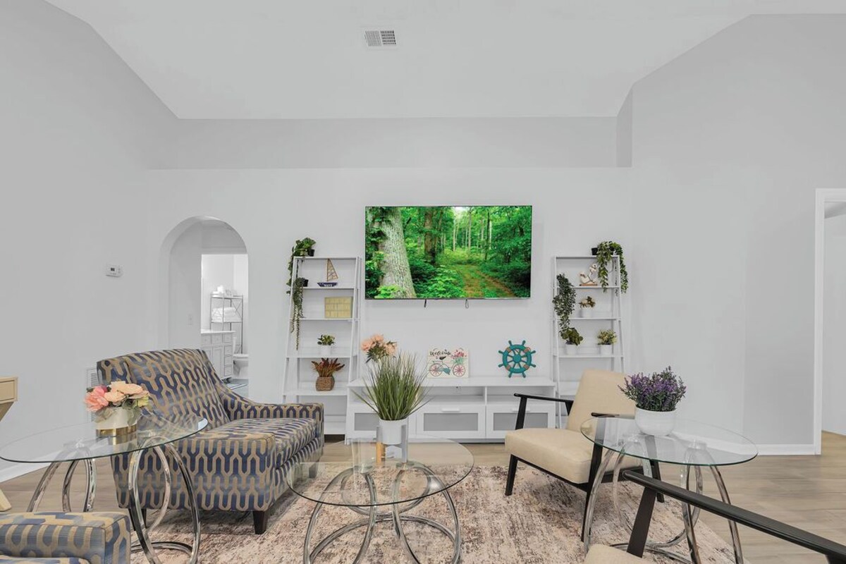 Located in Jacksonville, this gorgeous house offers 3 bedrooms 2 bath rooms with a mix of 2 twin, 2 full, and queen trundle bed. The 2 bathrooms come equipped with a bathtub and hair dryer. An additional living room space includes a sofa bed and twin bed for extra guests. Guests can enjoy amenities like WiFi, AC, heating, iron, and a washing machine. Experience the magic of Jacksonville at our tranquil house. The house is in quite and great location if you’re visiting Jacksonville for fun or work, this house is full furnishe and has everything the guests need.