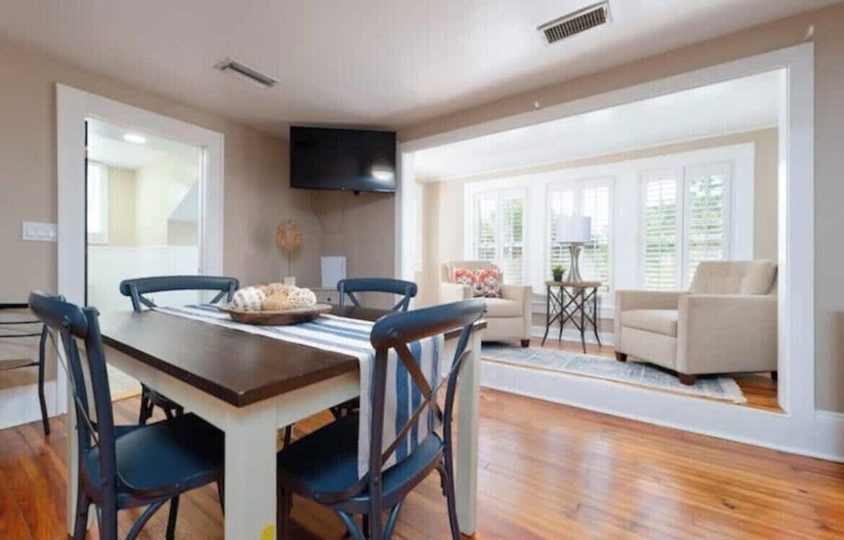 Discover this historic 3-bedroom gem in Jacksonville. This nice house features 2 queen beds, 1 king bed, a futon, and a murphy bed. With 3 bathrooms equipped with a bathtub and shower, guests can relax and unwind after a day of exploring. Enjoy amenities like WiFi, AC, and a washing machine during your stay. Whether you're traveling with family or friends, this quaint property offers a cozy retreat for your vacation. The property is in the heart of San Marco located across the street from the Saint Johns River, enjoy many restaurants and bars within walking distance. We look forward to hosting you at our place. Our prices include all fees. No hidden fees.