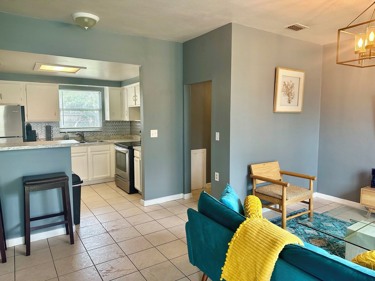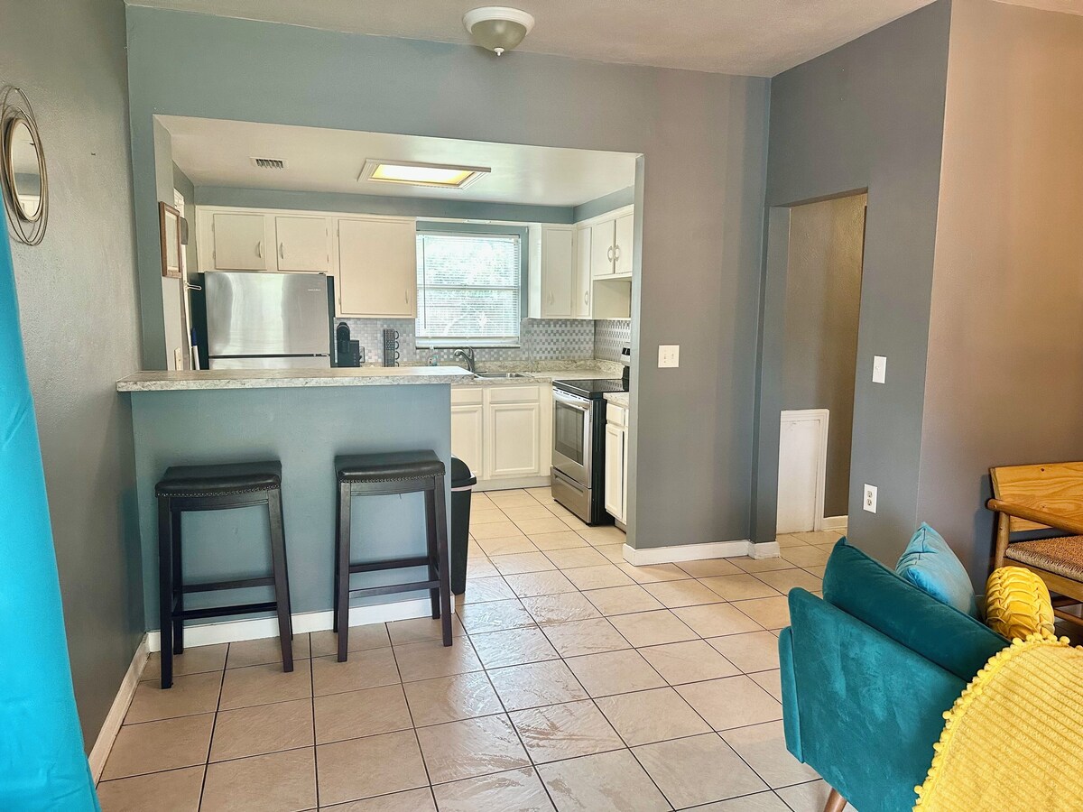 Key Amenities: Full-Size Kitchen: Equipped with modern appliances and basic cooking essentials for meals or snacks. Bedrooms: Two queen bedrooms with Smart TVs, blackout curtains, and comfortable bedding. Screened Patio: Enjoy bug-free outdoor relaxation. Fenced Backyard: Ideal for pets and private downtime. Fast Wi-Fi: Stay connected and productive during your stay. Private Parking: Dedicated parking for your convenience. Location: Explore Jacksonville with ease from this centrally located home: Attractions: Jacksonville Zoo and Gardens: About 10 miles away, featuring over 2,000 animals and lush gardens. Cummer Museum of Art & Gardens: 6 miles away, offering fine art and beautiful grounds. Adventure Landing: 8 miles away for mini-golf, go-karts, and arcade fun. Dining: Carolina Jax: 4 miles away, famous for inventive smash burgers and loaded fries. Restaurant Orsay: 6 miles away, offering Southern-inspired bistro classics and a great happy hour. Azurea at One Ocean Resort: 12 miles away, with beachfront dining and fresh seafood. Shopping: St. Johns Town Center: 9 miles away, featuring upscale shopping and dining options. Tinseltown: 10 miles away for unique vintage finds and local art. 103rd Street Plaza: 2 miles away, convenient for daily needs and small gifts. Welcome to Your Relaxing Escape! Step into a cozy, thoughtfully designed home in Jacksonville, Florida. Perfect for families, couples, or business travelers, this home offers a blend of modern comfort and easy access to local attractions. Guest Access: You’ll have access to the entire home except for the hall closet, which is used for storage. Make yourself at home and enjoy all available spaces. Other Things to Note: Please respect quiet hours from 11 PM to 7 AM. This is a smoke-free home. Smoking is not allowed indoors. No parties are permitted to maintain a peaceful environment. Book Your Stay: Ready for a memorable Jacksonville getaway? Check availability and book your stay today. We’re excited to host you! Our prices include all fees. No hidden fees.