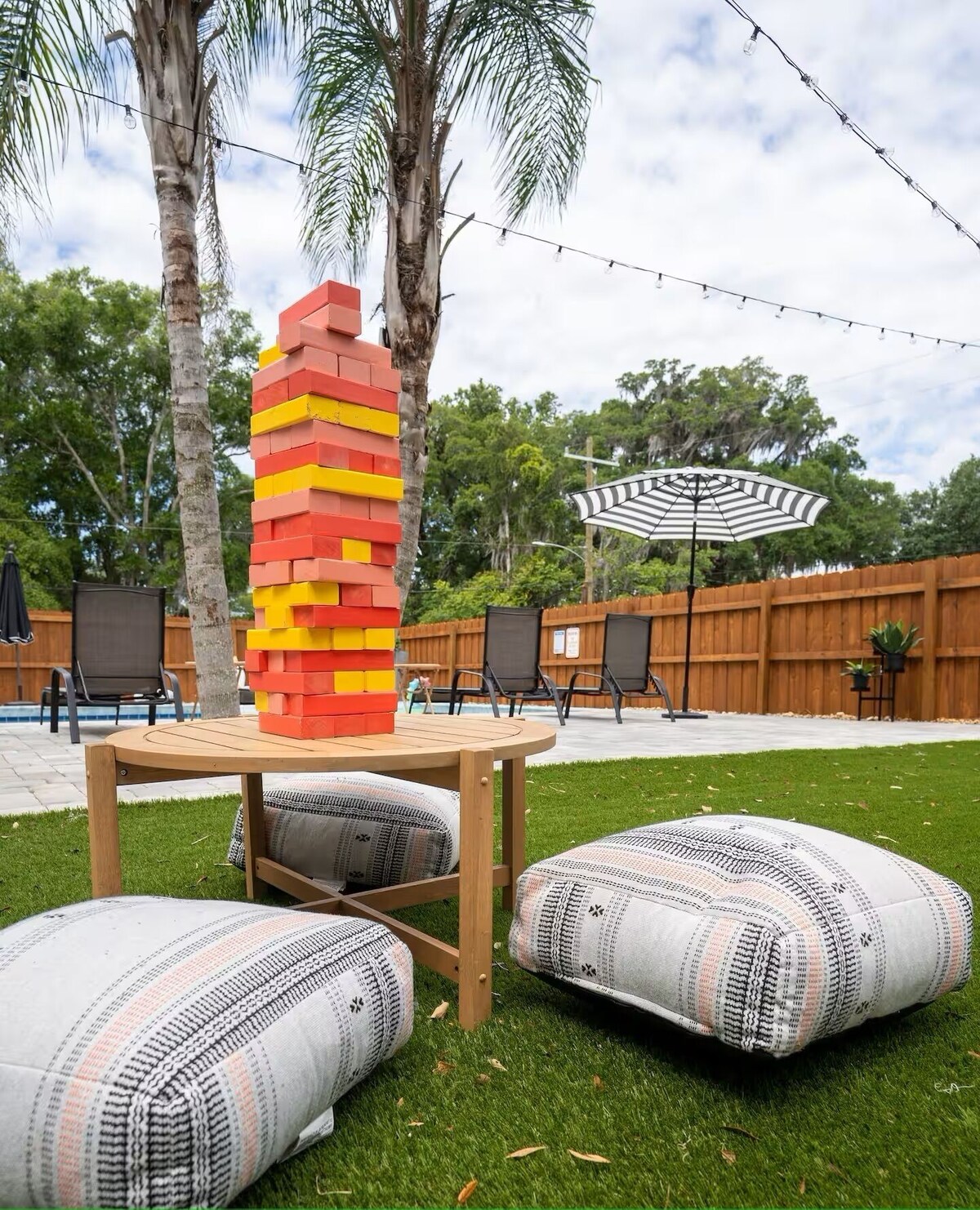 Welcome to the Retreat on Rollins. Located in the Lakewood/San Marco area, this completely renovated pool house is a place to relax, unplug, and experience. 3 bedrooms and 2 bathrooms (Sleeps up to 10), game room with tons of adult and children games, portable Poker and Beer Pong table for family fun, and dedicated office space. The private backyard has a heated pool, turfed lounge area, gas grill, and outdoor games. Celebrating something special? Make it more memorable with our luxury balloon backdrop add-on service for an extra unique feel... THE SPACE The master bedroom offers a king sized bed, Guest room 1 offers a queen sized bed, and Guest room 2 offers two twin beds with trundles under each. The game room has a couch that can sleep one adult or two children. Extendable dinning table that can sit up to 10 people. We also have an extra foldable Kids table with foldable chairs located inside the laundry room area, it can be used for meal time, to play games or as needed, it can also be taken outside. Smart TVS in Game room, Family room, Master bedroom and we added one to each guest bedroom. The living room tv will include a Mars box that allows you to watch live tv and tons of free movies. Washer, Dryer, & Iron available in Laundry. Workspace with desk, chair and printer with paper. High speed Wifi Complementary Coffee/Tea Station Complementary one time Shampoo, Conditioner, Body Wash, Hand Soap, Hand Lotion, Makeup Towel, Makeup Remover Wipes, Q-tips, Travel size Tooth Brush with Toothpaste, Toilet Paper, Dishwasher Pods, Dish Soap, Sponge, Paper Towel, Clorox Wipes, Laundry Pods and Laundry Sheets. Outdoor: Private heated pool with plenty of pool chairs, pop-up shade(s), 4 life jackets for kids 33 to 55lbs, floaties, 3 goggles, water toys, outdoor jenga, cornhole, cooler, water jug and an extra foldable 6ft table. String lights to enjoy the evening. Indoor Game Room: Tv, football table game, speed ball 9, portable poker table with 3 different games to play for adult fun! (Includes chips and cards), more arcades like Packman, Galaga + 10 more games, an Air hockey table, a digital portable table with tons of family games to play, a Nintendo switch with Mario Kart and Mario Party, a portable beer pong table and more children and adult board games… Baby Care: If you are in need of a pack and play, high chair, portable baby bathtub or car seat, baby monitor, they can be available to you at not extra cost, just let us know and we will leave them at the premises for your stay. Celebrating something special? Celebrate your special moments in style and make your stay truly unforgettable! We offer luxury balloon installations by a professional decorator, perfect for kids’ themed birthday parties, adult celebrations, graduations, holiday gatherings, engagements, and more. Our custom packages start at $350 (excluding property rental). Let us bring your vision to life—send us a message with your details, and we’ll create a package tailored just for you! ** Pool heaters are turned off 5/15 - 9/15. Contact management 72hrs prior to your arrival to request pools heated. Guests use pool at own risk. ********************************************************* Attractions Near By: 5405 Rollins Avenue is located in the Lakewood neighborhood of Jacksonville, Florida. This area offers a variety of attractions and activities within a short drive. Here are some nearby points of interest: Parks and Nature Preserves: • Tree Hill Nature Center: A 50-acre urban woodland preserve offering nature trails, a butterfly house, and educational programs about local wildlife and ecosystems. • Jacksonville Arboretum & Botanical Gardens: A 120-acre arboretum featuring a series of trails through diverse ecosystems, showcasing native plant species and offering a peaceful retreat for nature enthusiasts. • Castaway Island Preserve: This 300-acre preserve offers trails and boardwalks through salt marshes and tidal creeks, providing excellent bird-watching opportunities and scenic views of the Intracoastal Waterway. Beaches: • Jacksonville Beach: Approximately a 25-minute drive east, this popular destination offers sandy shores, a fishing pier, and a variety of restaurants and shops along the beachfront. Cultural and Historical Sites: • Timucuan Ecological and Historic Preserve: A vast preserve that includes historic sites like the Kingsley and Fort Caroline, offering insights into the area’s natural and cultural history. • Cummer Museum of Art and Gardens: Located about 6 miles northwest, this museum features an impressive art collection and historic gardens along the St. Johns River. Shopping and Entertainment: • St. Johns Town Center: A major shopping destination approximately 8 miles southeast, offering a wide range of retail stores, dining options, and entertainment venues. These attractions provide a mix of natural beauty, recreational activities, cultural experiences, and shopping opportunities, all within a reasonable distance from 5405 Rollins Avenue. Our prices include all fees. No hidden fees.